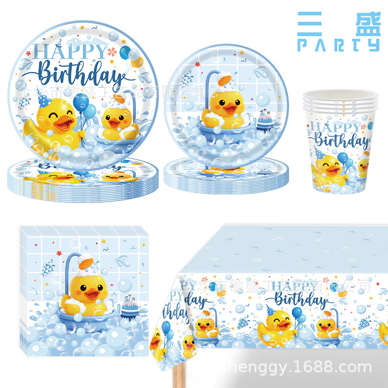 新款小黄鸭一次性派对装饰小黄鸭小鸭餐盘纸巾装饰纸盘纸杯桌布