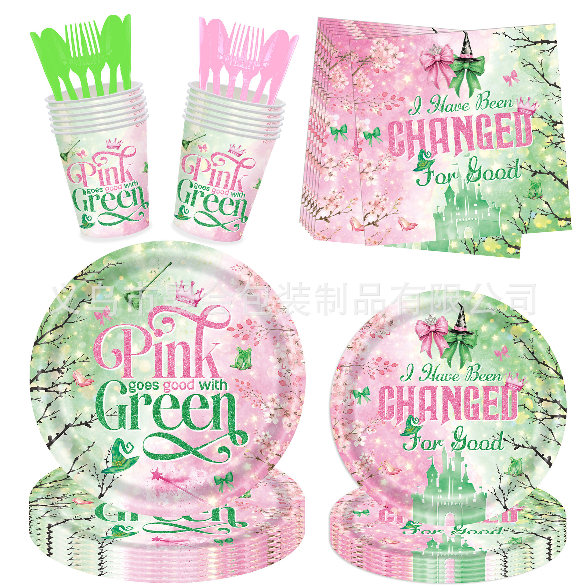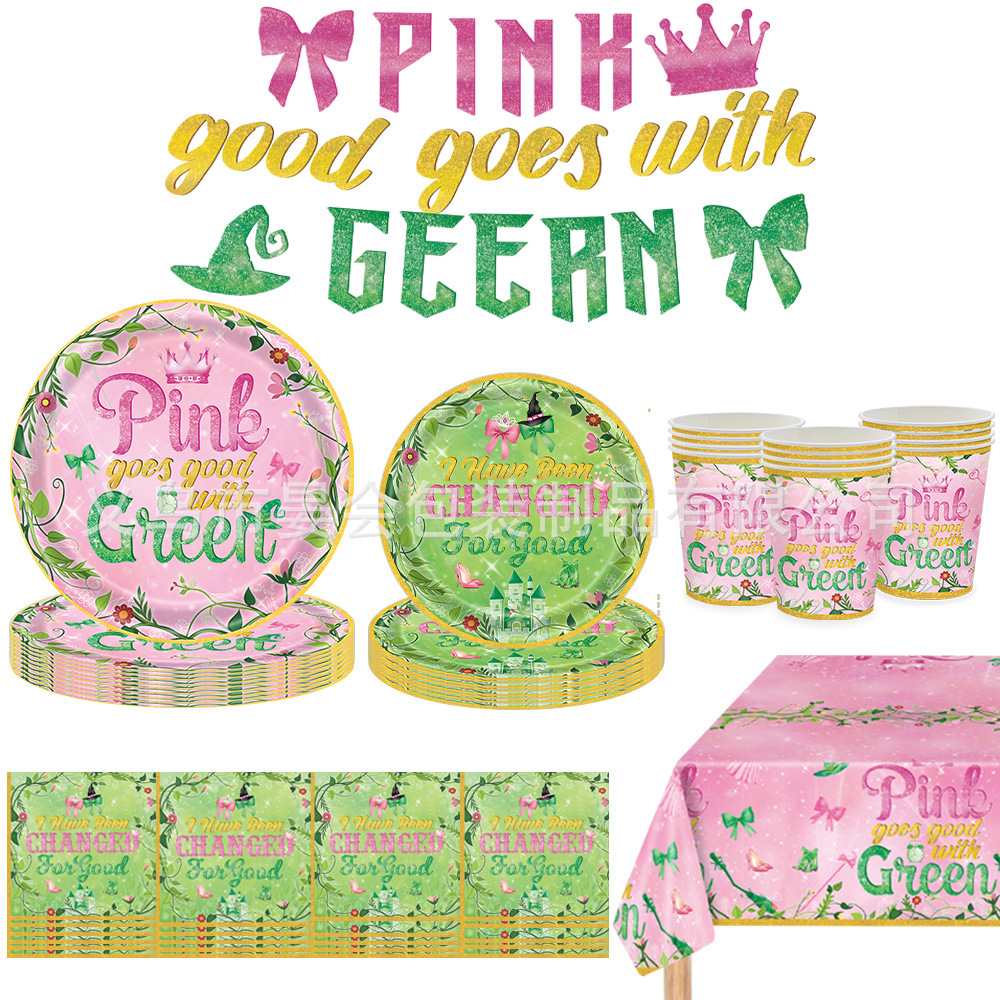 2025新型ピンクグリーン魔女誕生日パーティー食器紙皿ティッシュテーブルクロスなど使い捨て装飾用品
