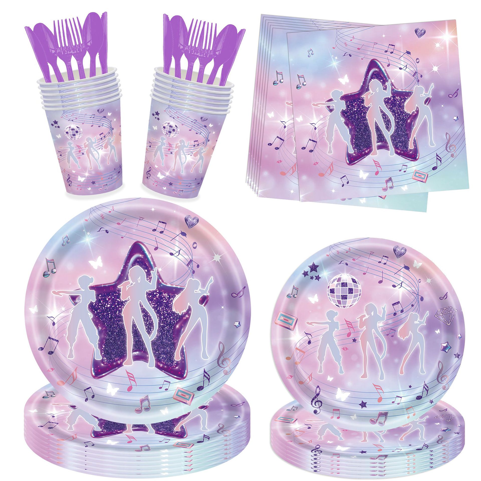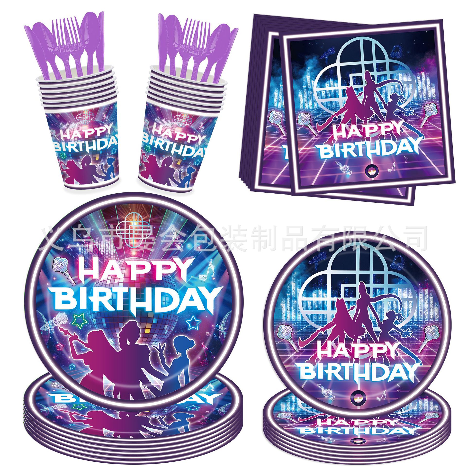 新款Kpop生日派对餐巾餐具一次性用品,猎魔女团主题生日装饰用品