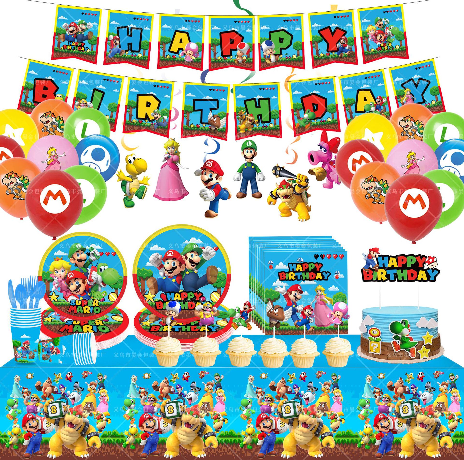新品オリジナルマリオ誕生日パーティーテーマ食器セット紙コップ紙皿ティッシュテーブルクロスホイスト