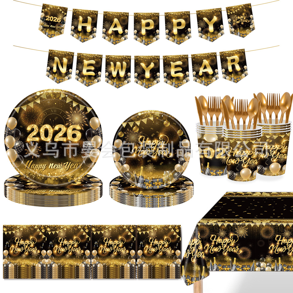 2026年新年テーマ ハッピーニューイヤー 誕生日パーティーセット 紙コップ、紙皿、ペーパータオル、その他の装飾