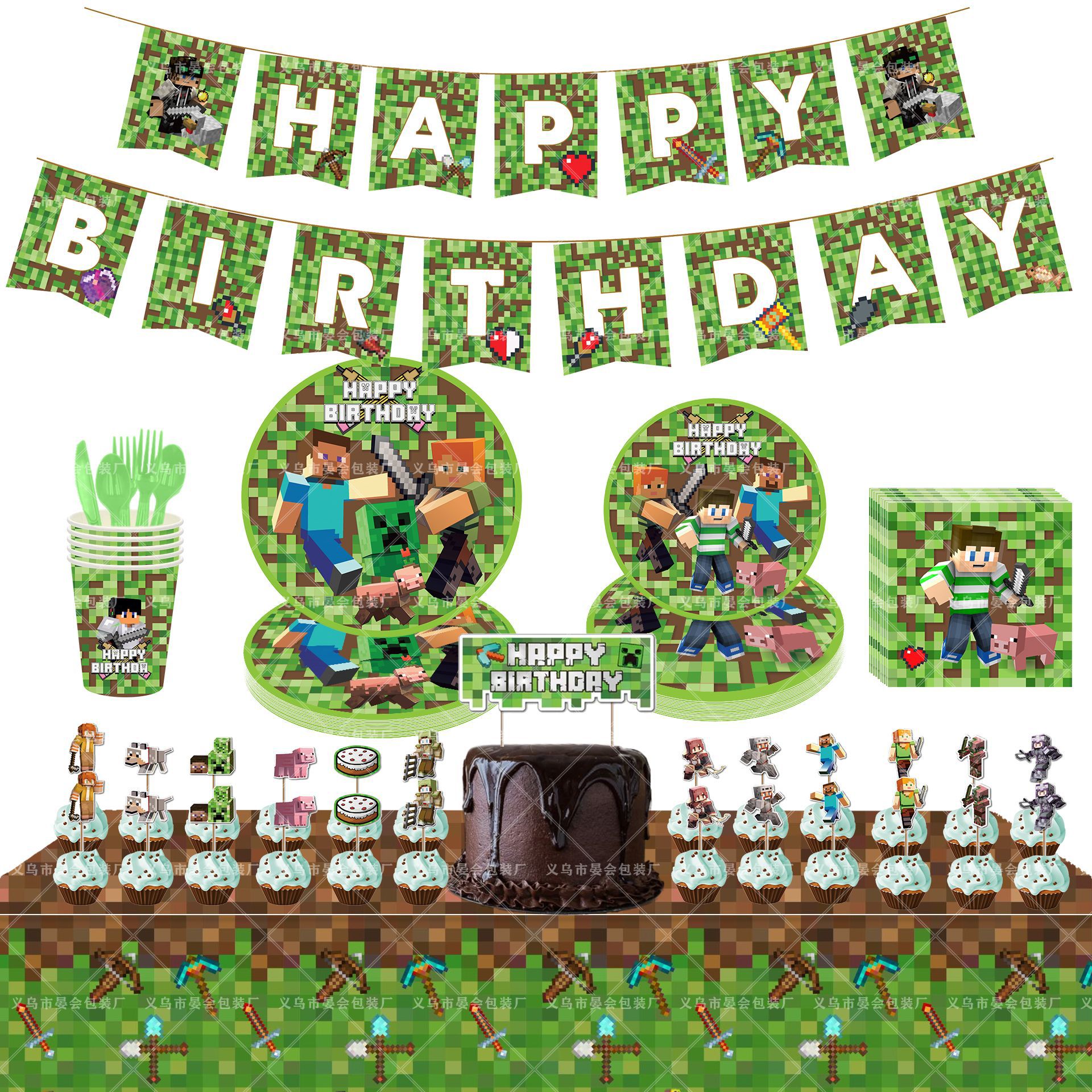 新しいピクセル大戦私の世界のテーマパーティー食器装飾用品紙コップ紙皿ティッシュナイフフォークスプーン