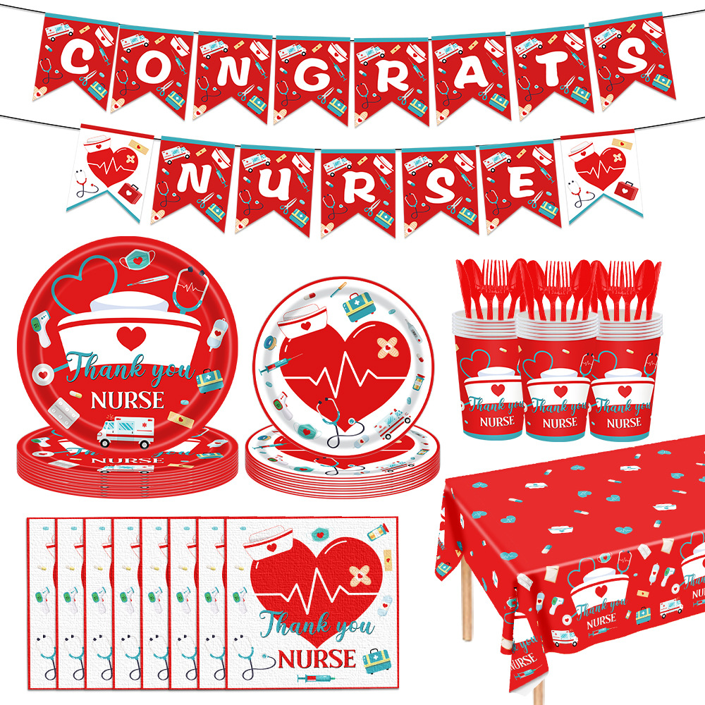 国境を越えた新しい看護師の日のテーマパーティー装飾医師看護師の祝日食器紙皿ティッシュ紙コップテーブルクロス