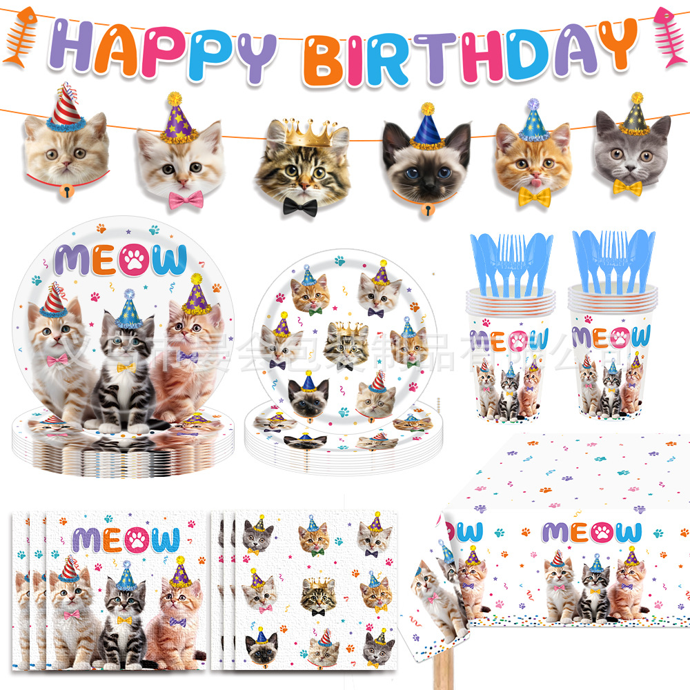 新型アニメかわいいペット猫誕生日テーマパーティー紙コップ紙皿ティッシュなど使い捨て装飾用品