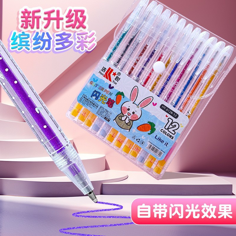 亮晶晶画笔手抄报花边彩色标记笔套装学生用多色荧光笔手账闪光笔