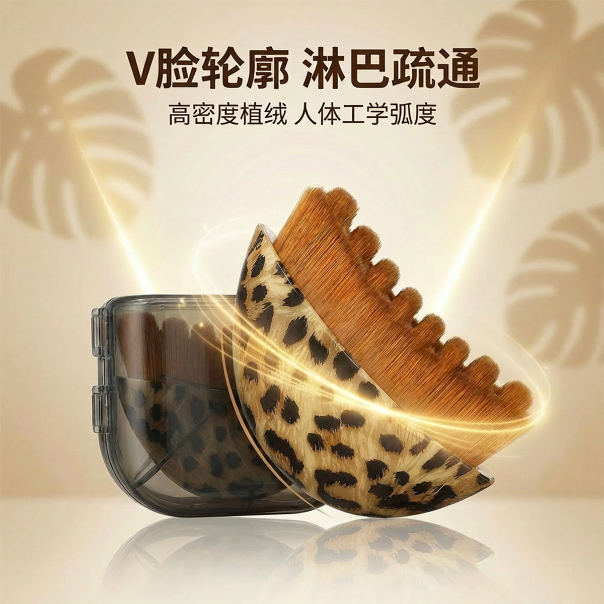 跨境新款豹纹淋巴轮廓刷月牙刷面部刷按摩护理刷