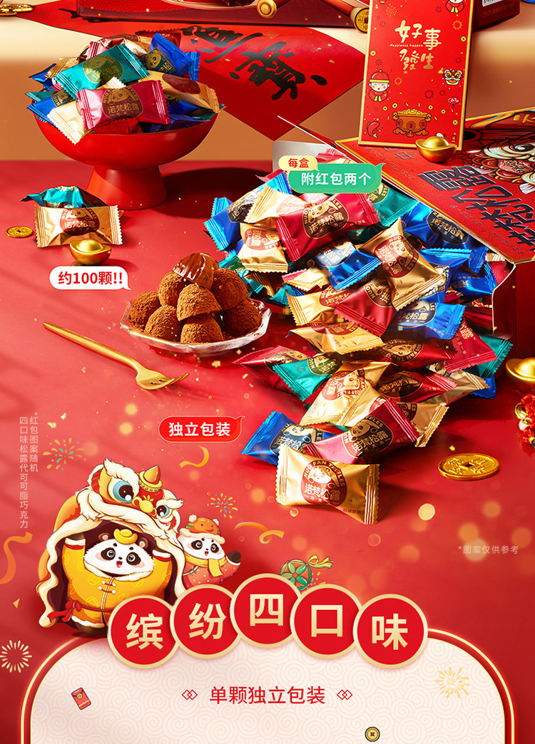 包装规格 年货款500g*1盒(约100颗),年货款500g*2盒【送礼袋】,日常款500g*1盒(约100颗),日常款500g*2盒【送礼袋】,年货款400g*1盒(约80颗),年货款400g*2盒【送礼袋】