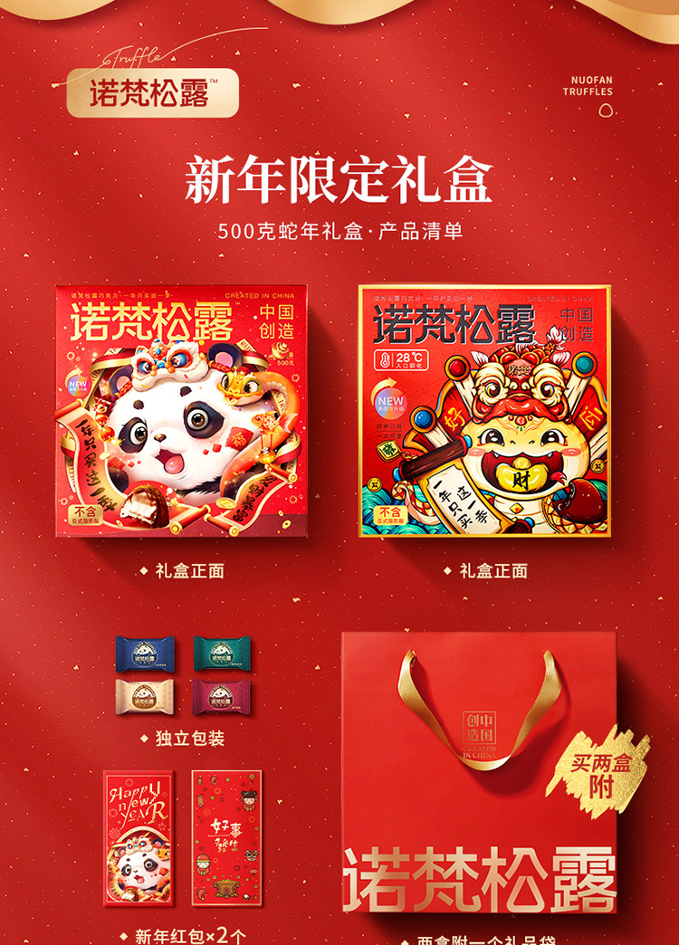 诺梵松露熊猫款金松露巧克力礼盒装年节送礼248g