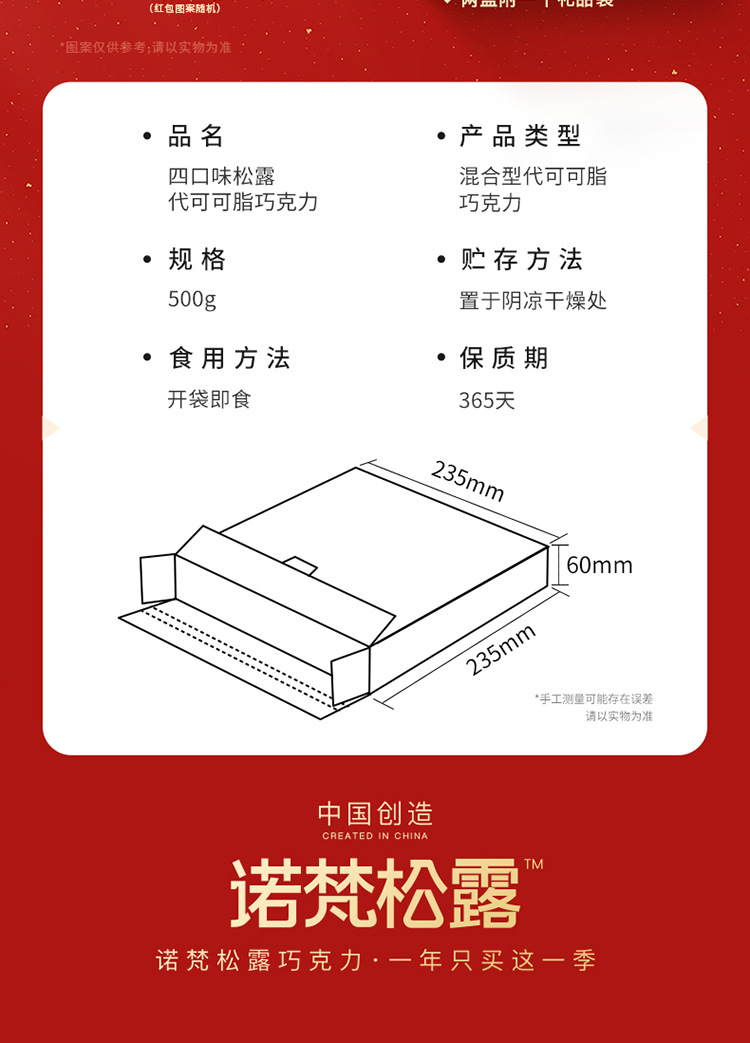 诺梵松露巧克力年货节送礼礼盒装送家人喜糖伴手礼零食500g
