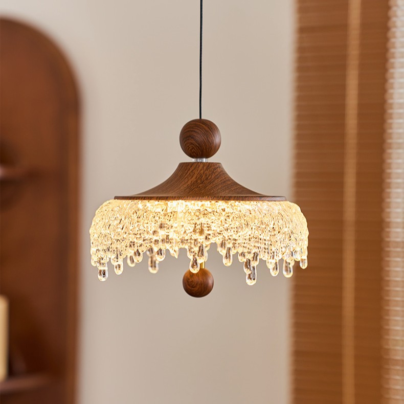 フレンチミッドセンチュリーリフティングウォータードロップシャンデリア氷山レトロウォールナットカラーレストランベッドルームベッドサイドタッチ小型シャンデリア
