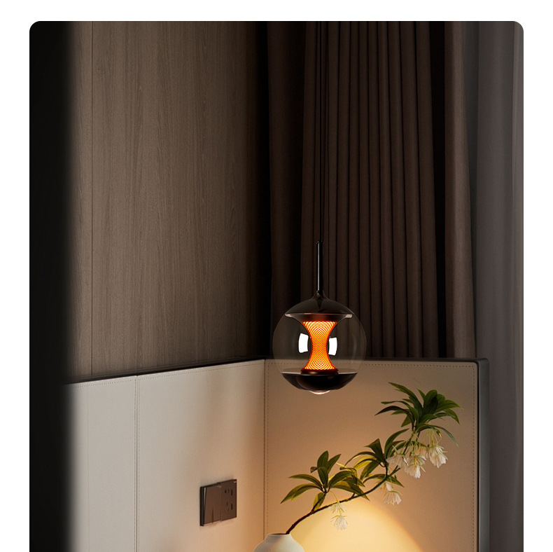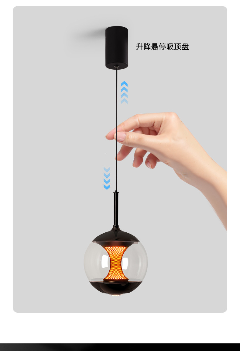 意式极简卧室床头小吊灯现代简约高级感可升降餐厅吧台玻璃吊线灯