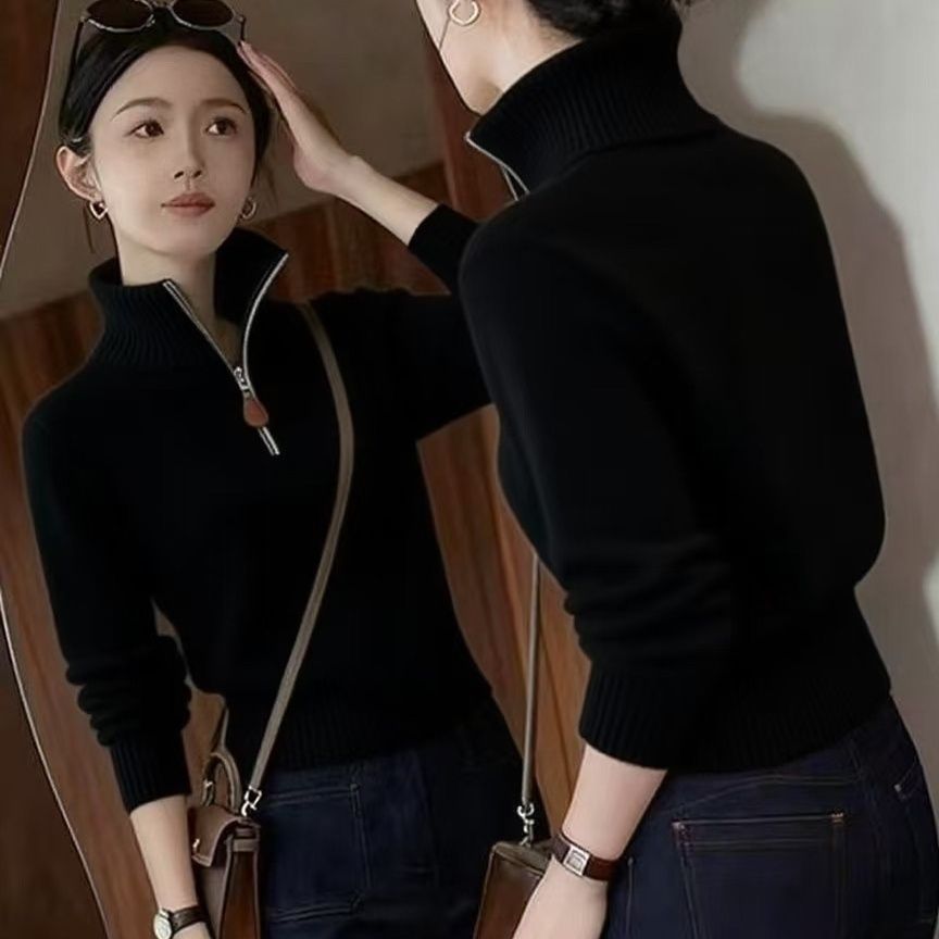 时尚慵懒风设计感高领针织打底衫女秋冬季新款高级感百搭显瘦上衣