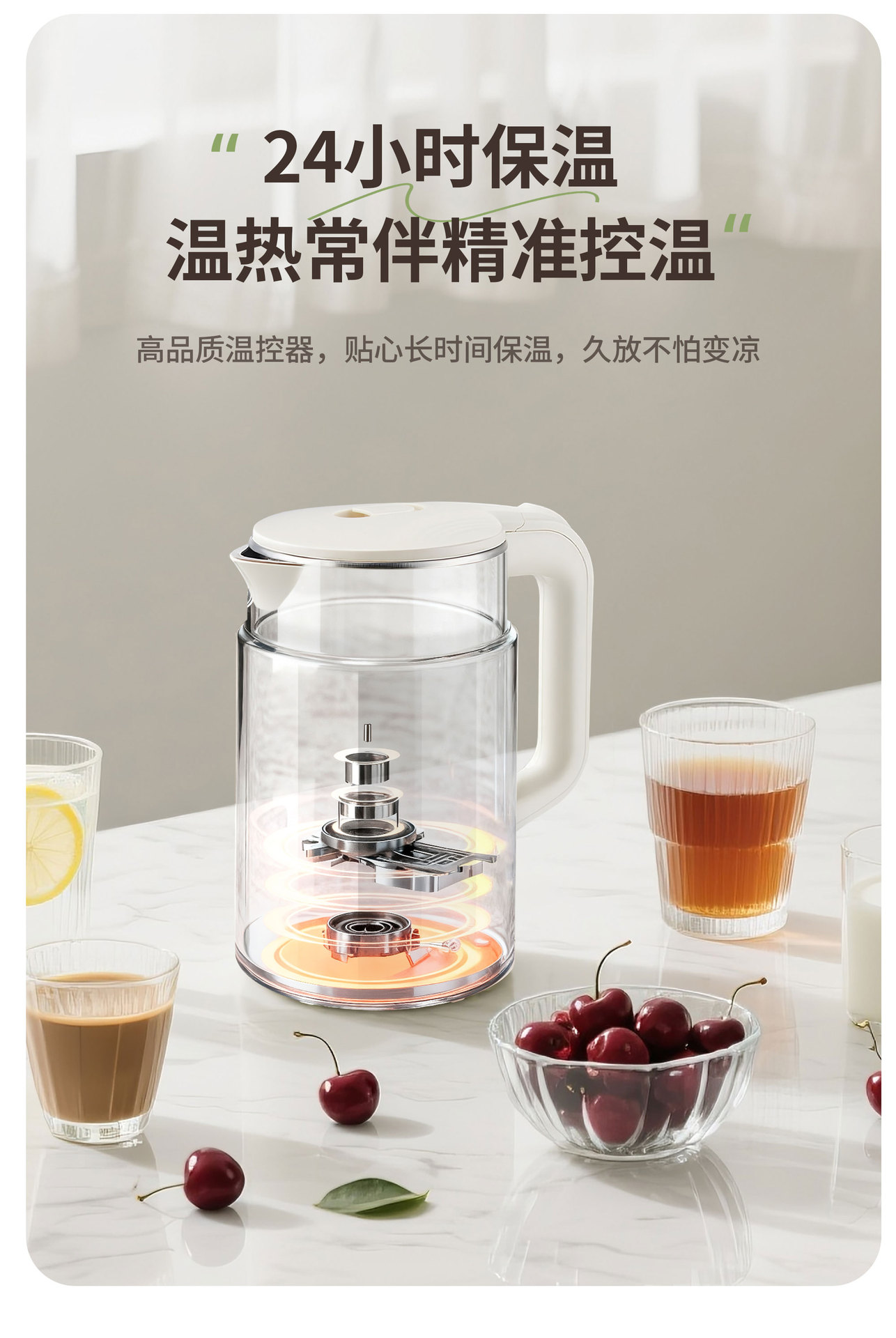 ガラス製ヘルスケトル、家庭用多機能ティーポット、オフィス用スマート保温湯沸かし器、花茶用ギフト