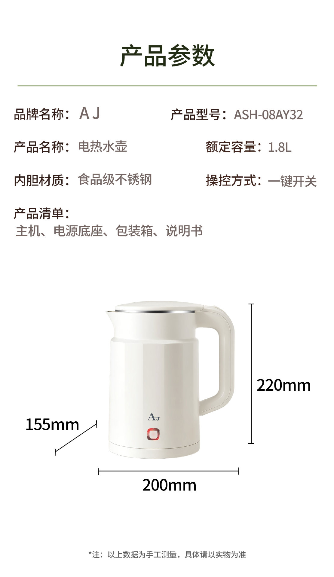 AJ烧水壶2025新款家用大容量泡茶食品级不锈钢保温一体电热水壶