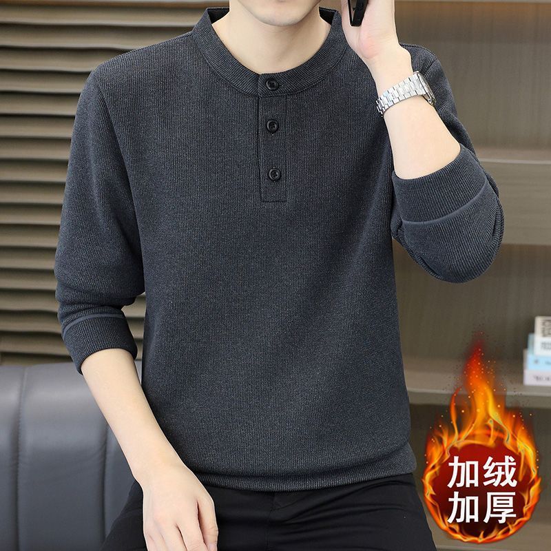 秋冬季男士加绒加厚长袖卫衣大码保暖潮流休闲打底衫百搭洋气上衣