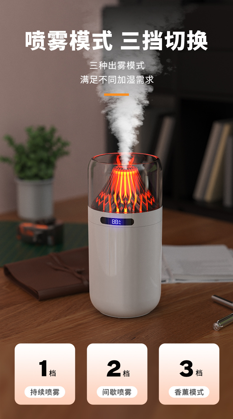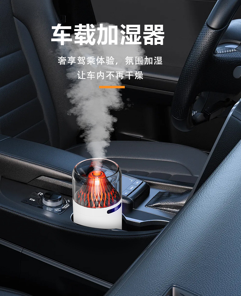 新款七彩火山加湿器办公家用小型补水香薰机 usb充电车载加湿器