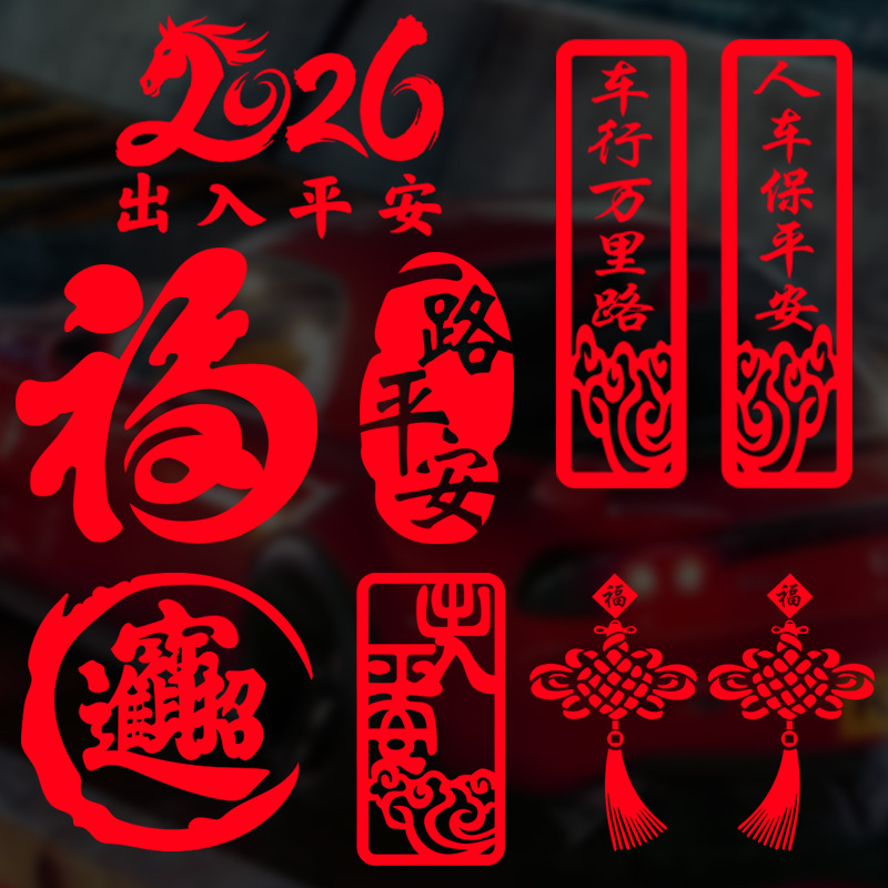 2026新年车贴马年过年汽车贴纸一路平安出入平安春节福字装饰贴纸
