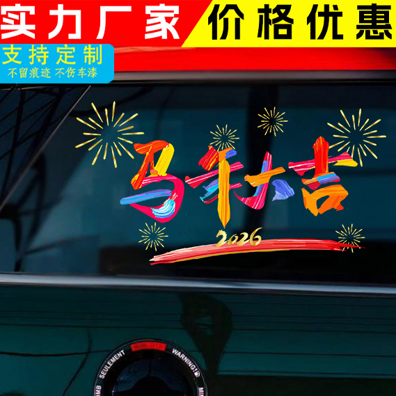 2026新款新年快乐汽车贴春节创意车身贴车载遮挡划痕电动车贴纸
