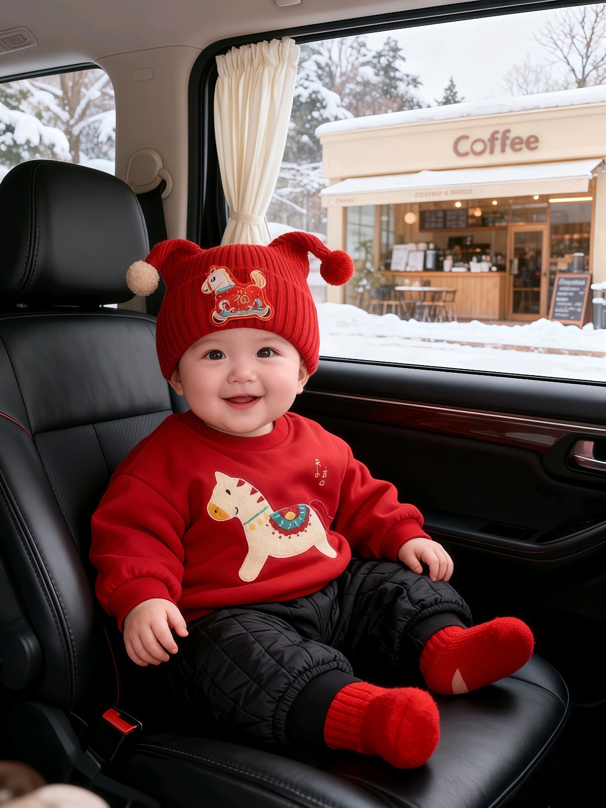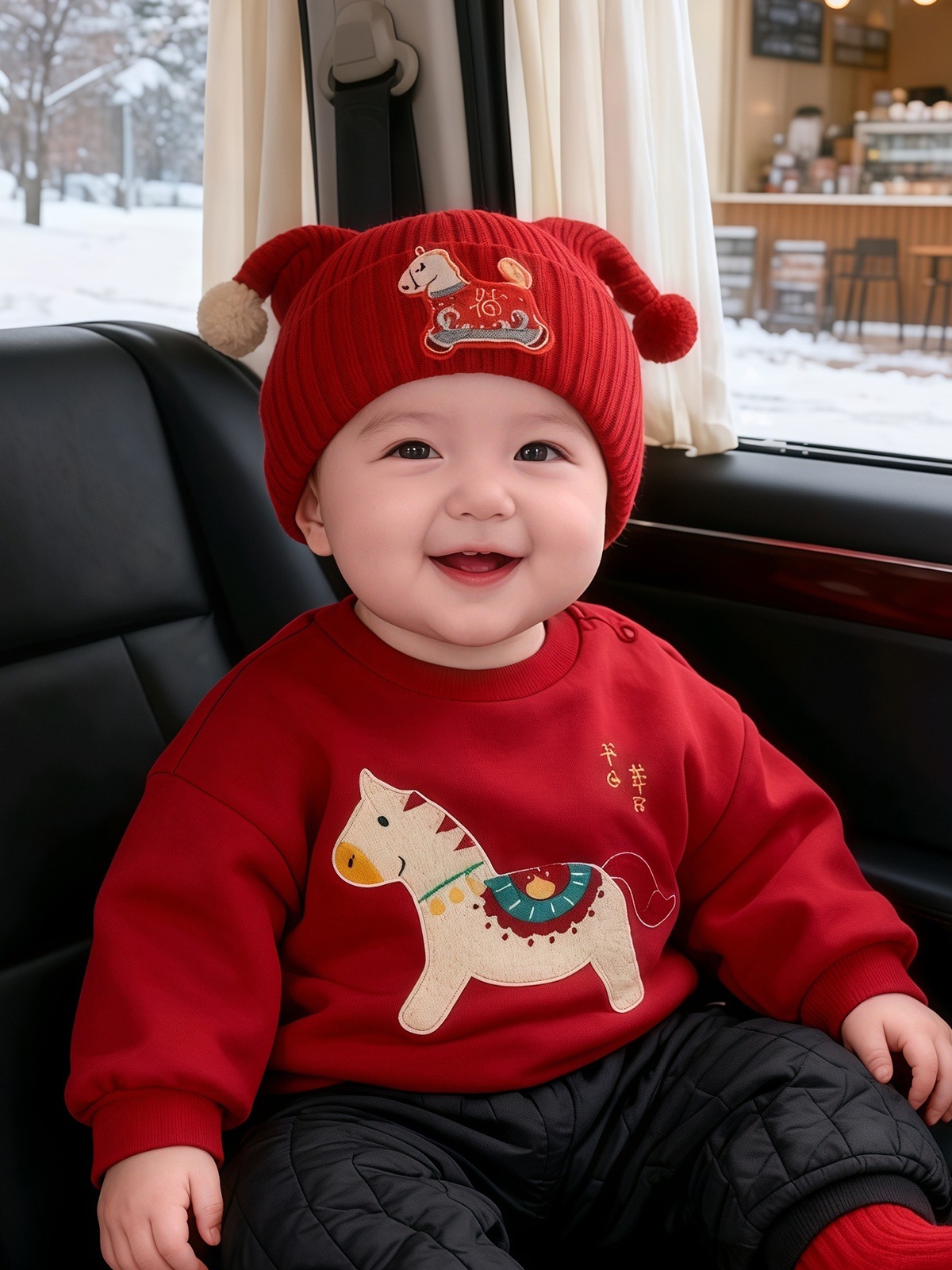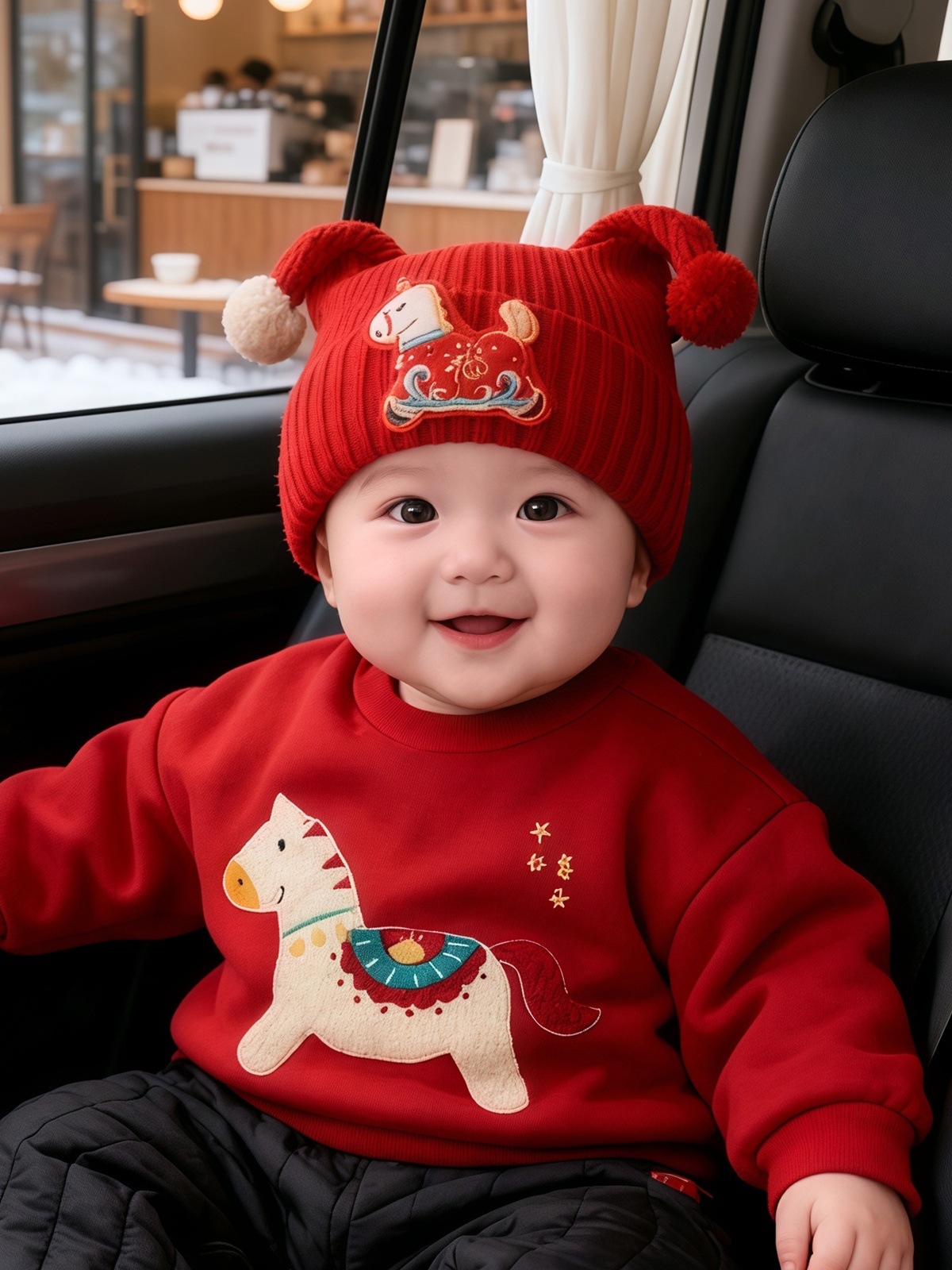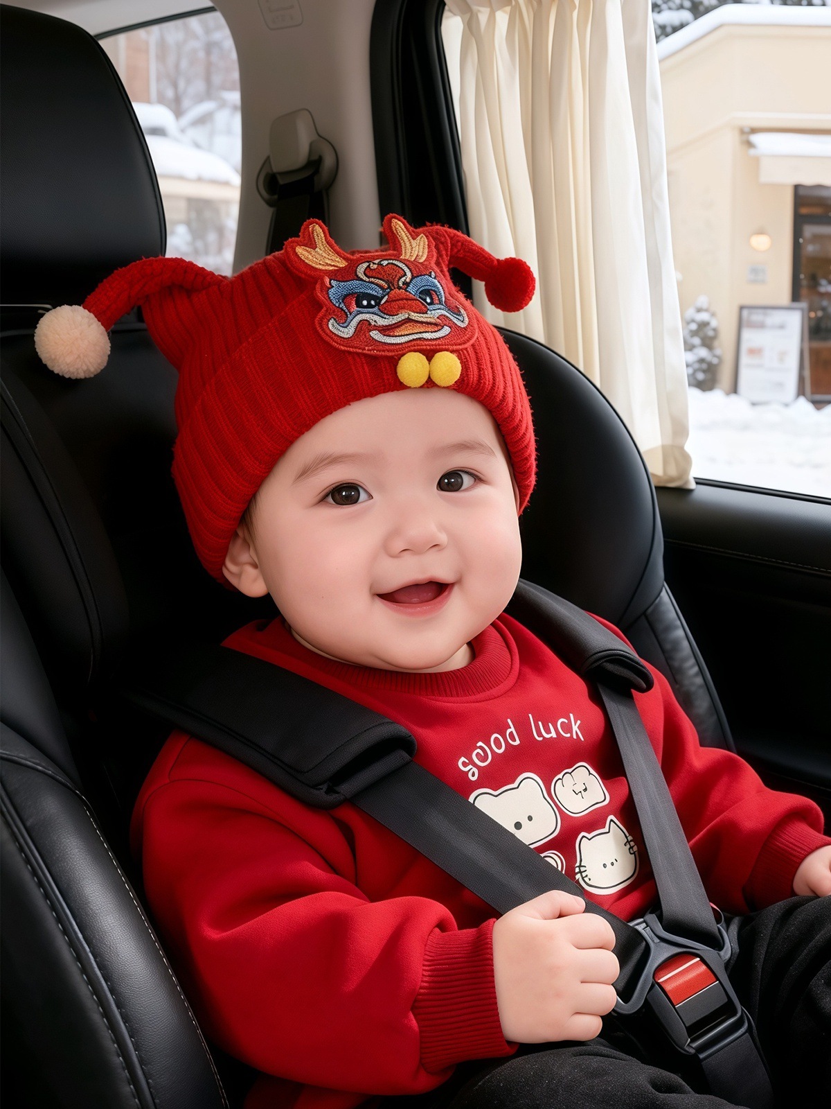 冬季儿童婴儿红色喜庆帽子新年保暖男宝宝女孩周岁护耳套头毛线帽