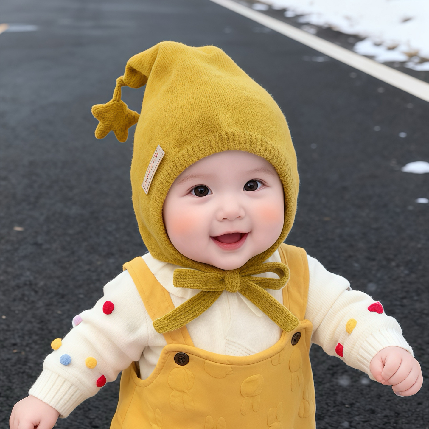 ベビー帽子秋冬モデル男女赤ちゃん保温フード
