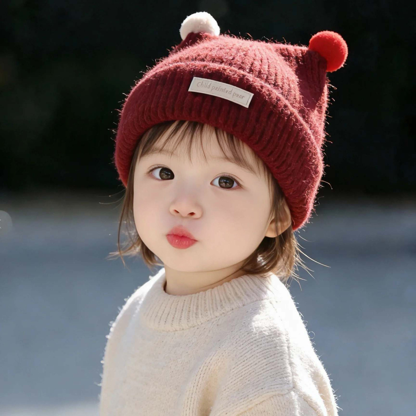宝宝帽子冬天毛线帽喜庆红色可爱超萌针织套头帽婴幼儿加厚保暖帽