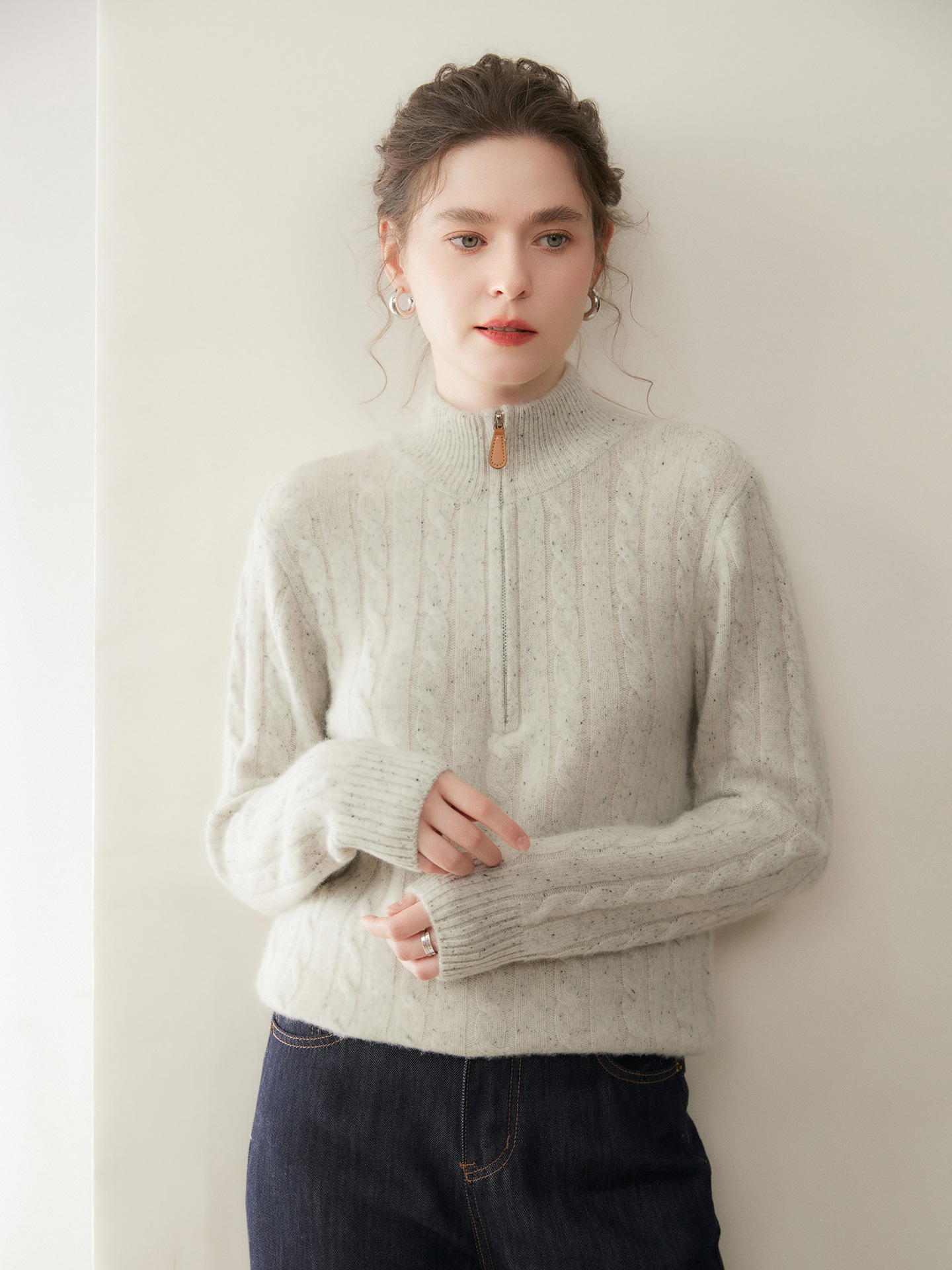 感半开拉链麻花山羊绒衫女简约针织毛衣半高领打底衫加厚保暖