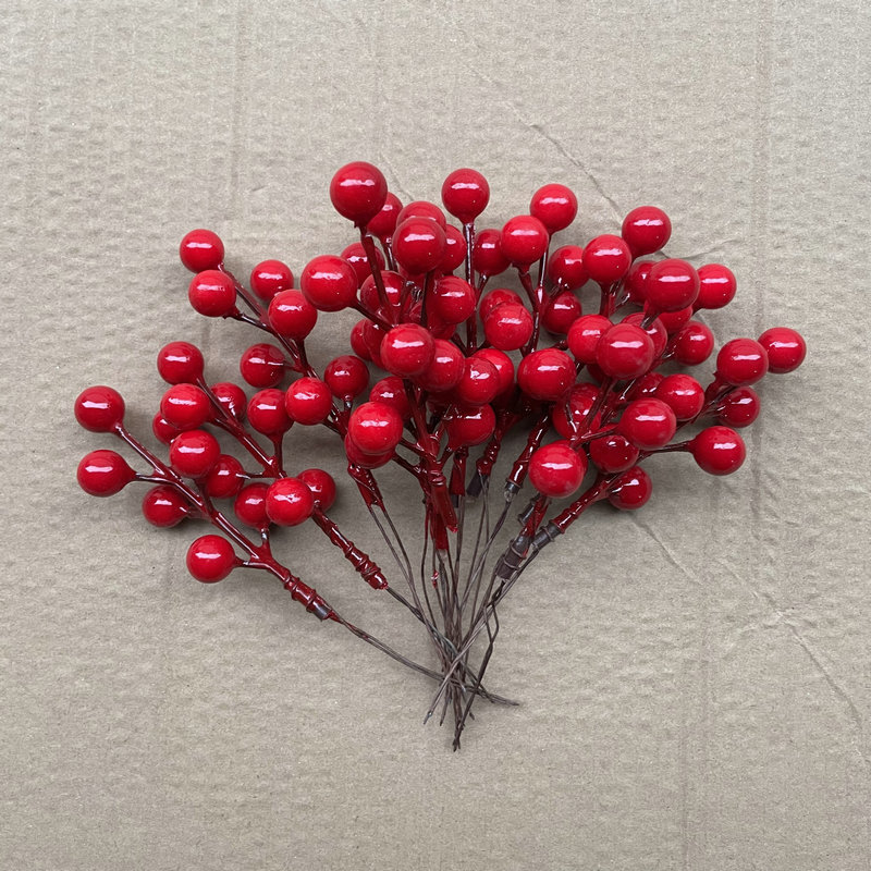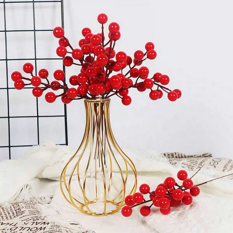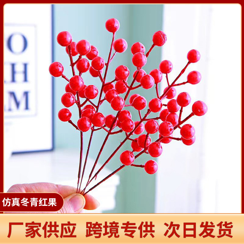 模造の赤い果物 新年の飾り 模造のホーリーベリー フォーチュンフルーツ 赤い果物 リビングルームの飾り 12股の単一のホーリーベリーの実