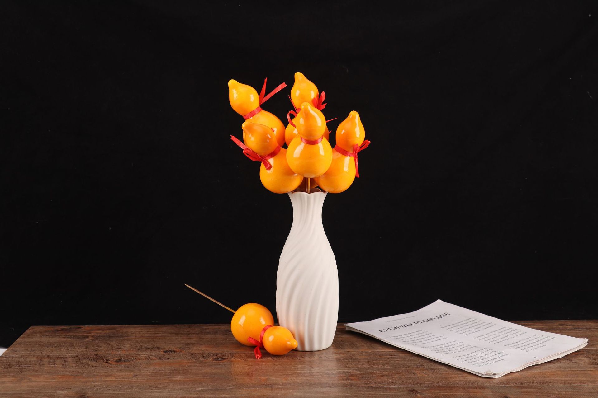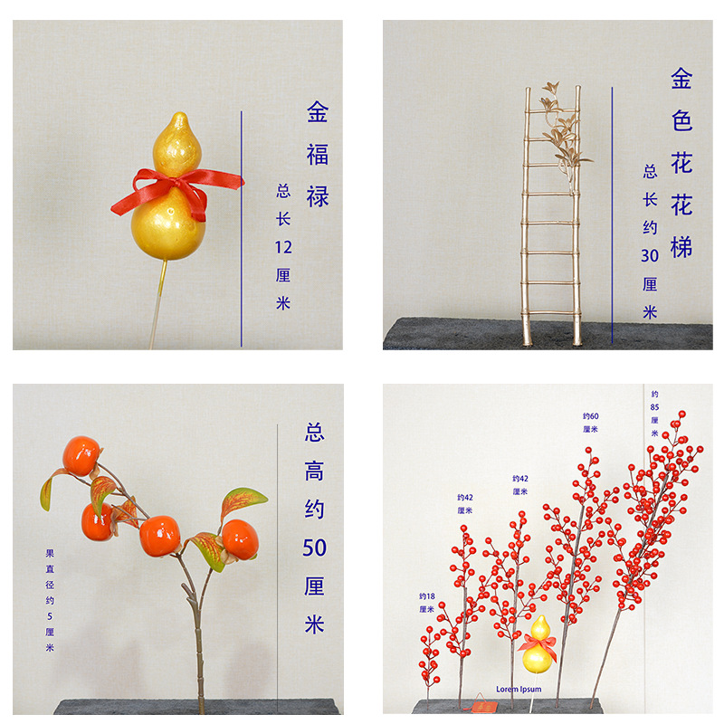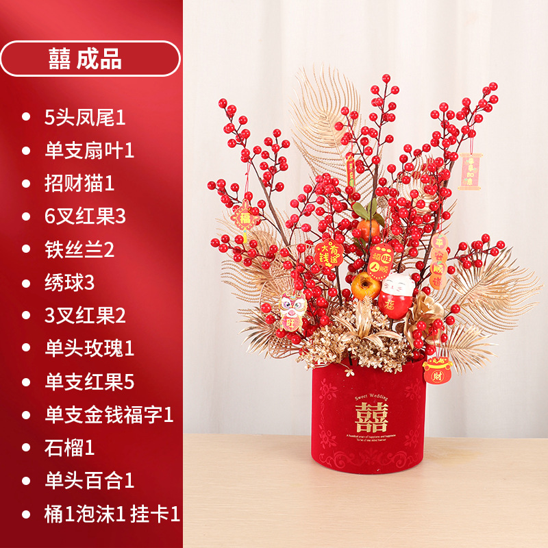 福桶花材、元宝、葫芦、財運果、冬青、紅果、金色のユーカリ、福桶飾り、金果、造花