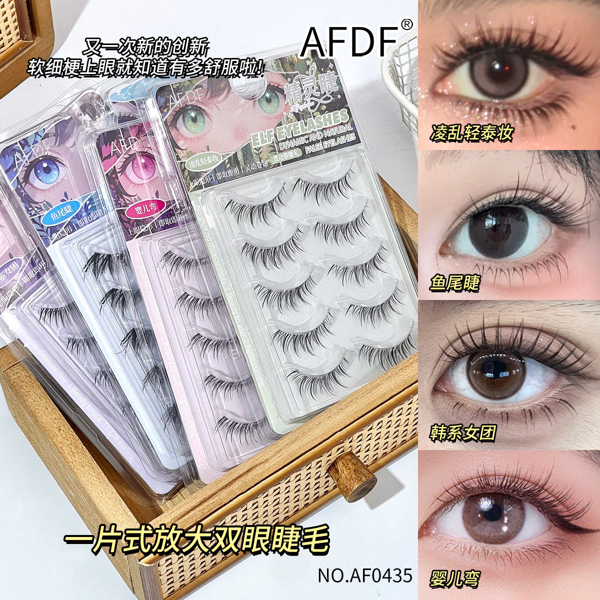 AFDF精灵睫假睫毛婴儿弯纯欲自然上镜漫画眼假睫毛细透明梗一片式