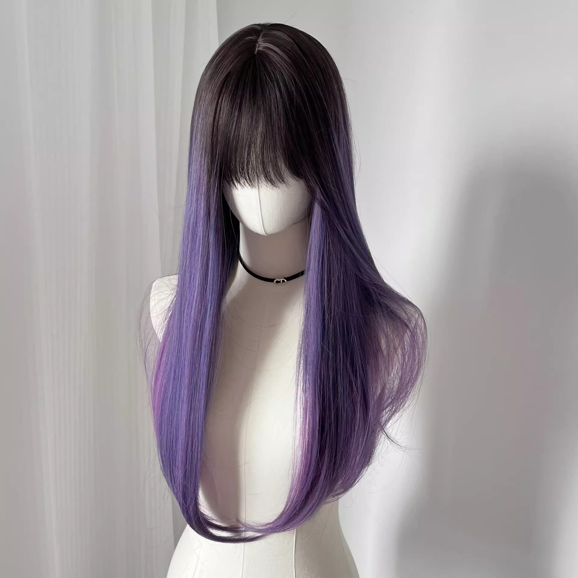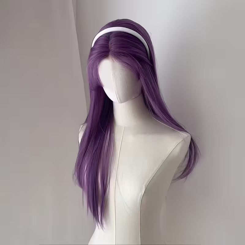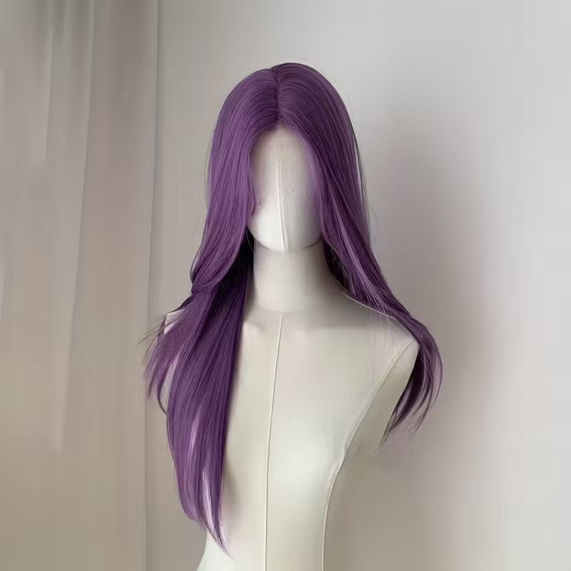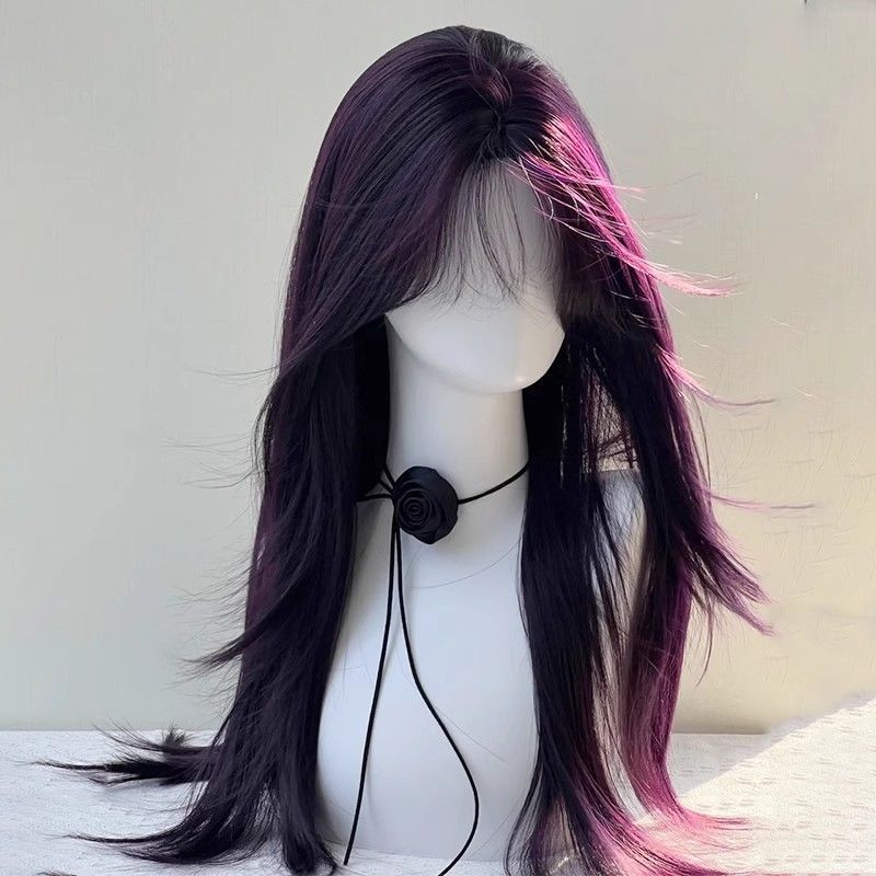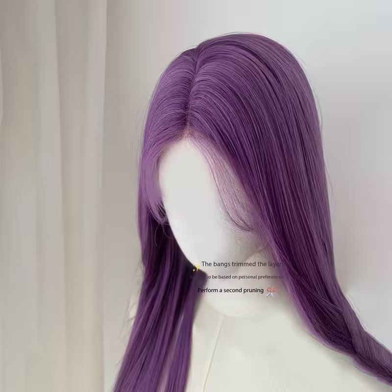 ファッションかつらの濃い紫色の八の字の前髪の層次感の長いまっすぐな髪は頭皮の気質の雰囲気感をシミュレーションします。