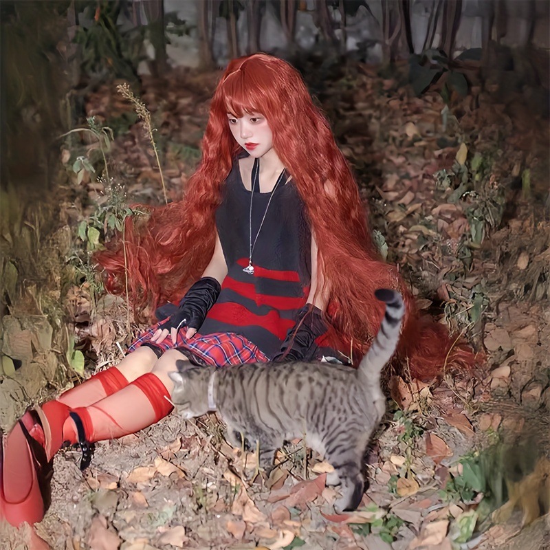 順西かつら女オレンジ色1メートル長髪lolitaトウモロコシウール巻き森系写真長巻き髪全頭