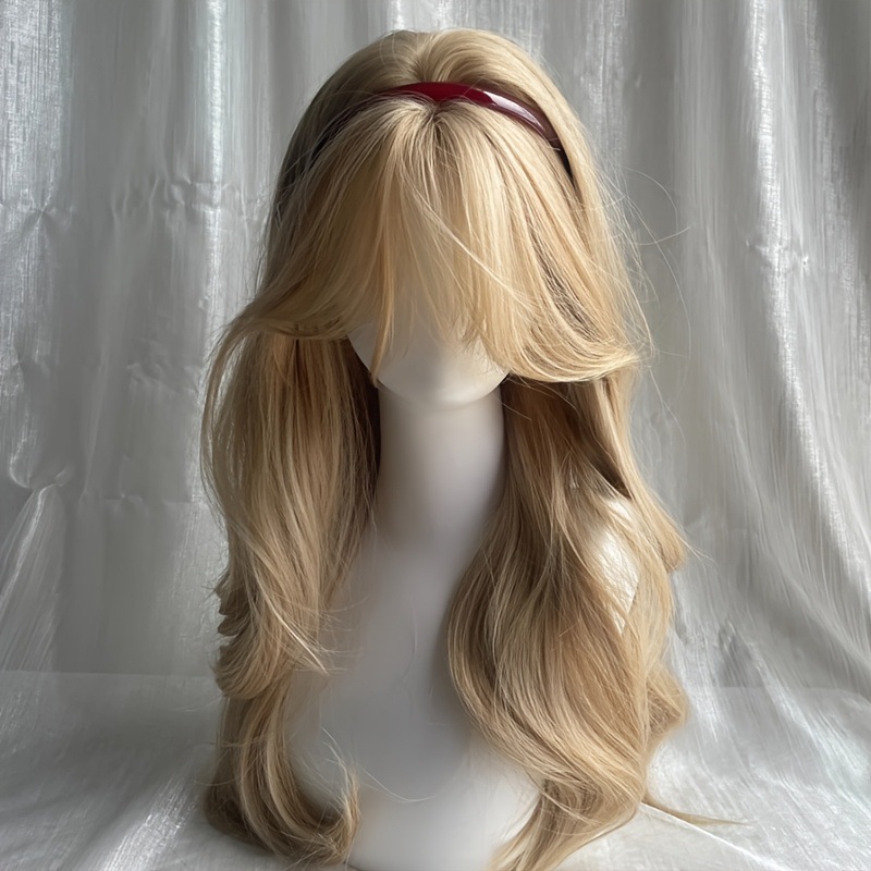 順西国境を越えて人気のある金色の前髪大波の長いカール日常のふわふわした全頭カバーかつら工場卸売り