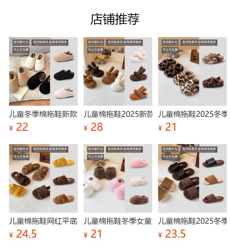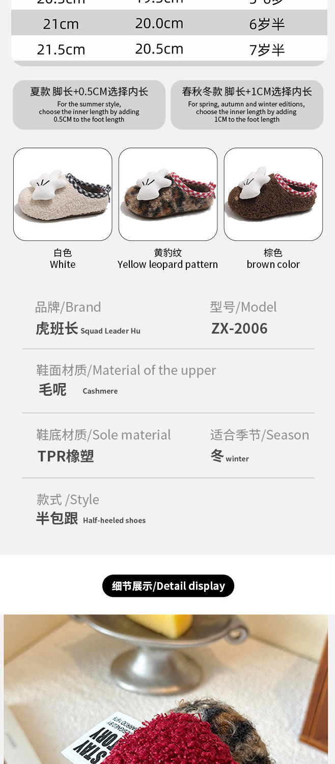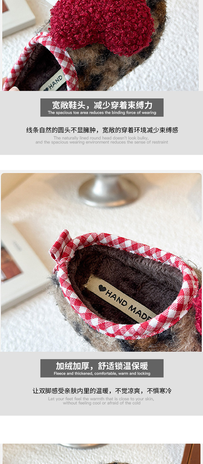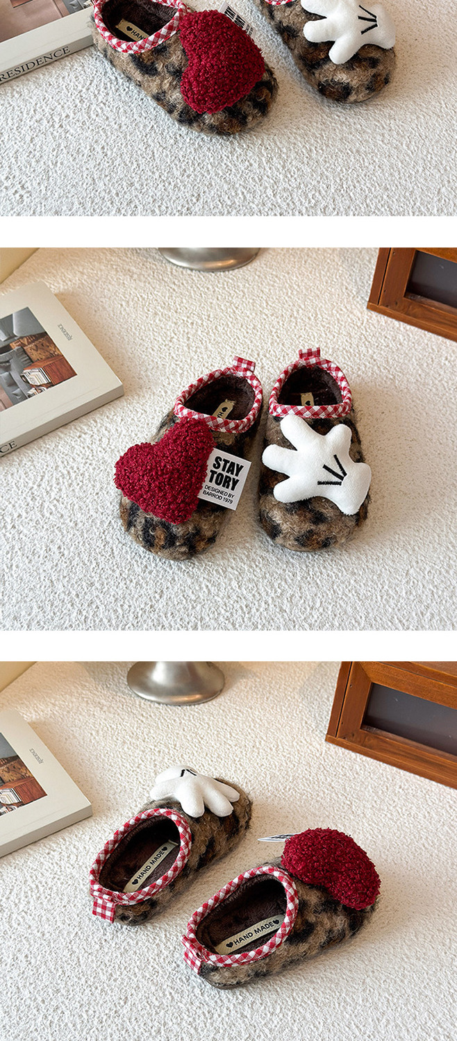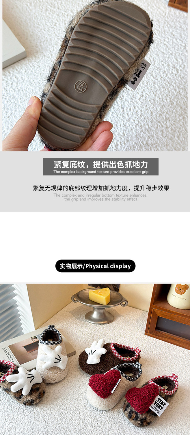 女童鞋冬季加绒2026男AB款玩偶豹纹棉鞋一脚蹬防滑保暖半拖毛毛鞋