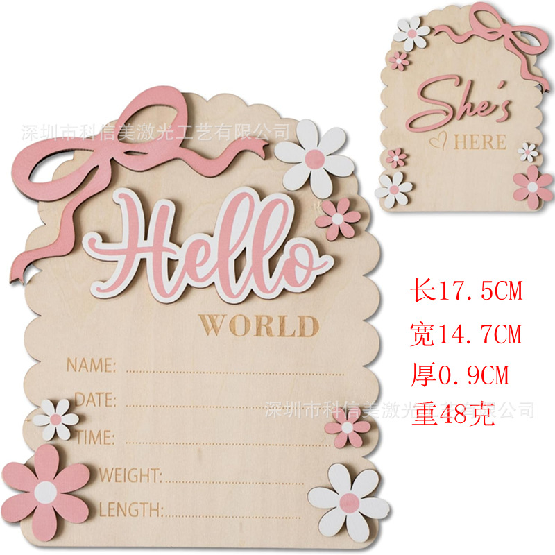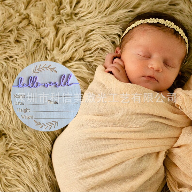 ハローワールド赤ちゃん出生告知新生児入浴プレゼント木製裏赤ちゃん写真程碑道具