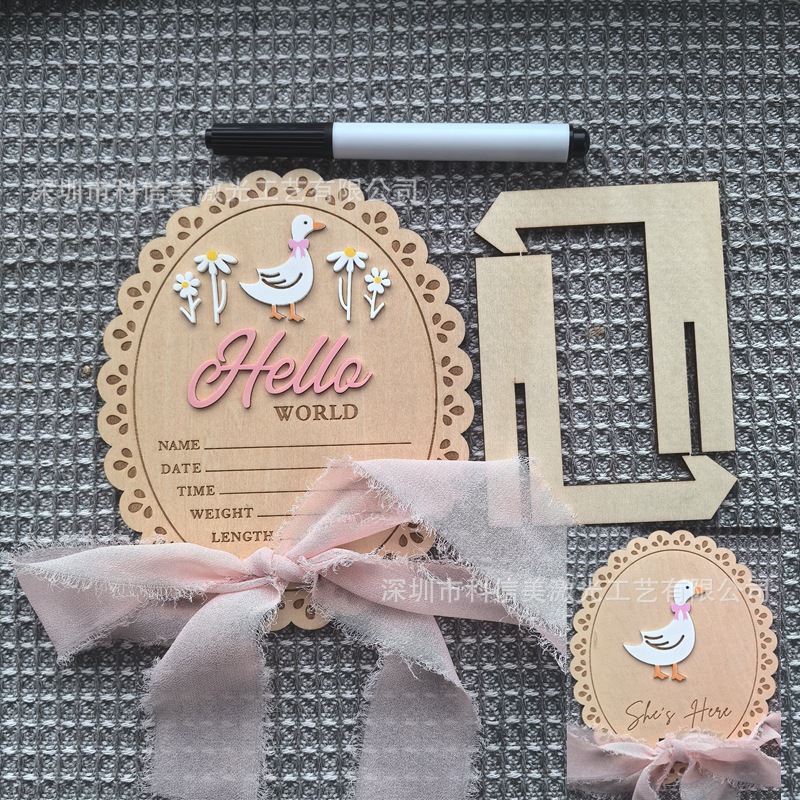 Baby shower 婴儿出生公告牌Hello World新生儿摄影道具双面创意