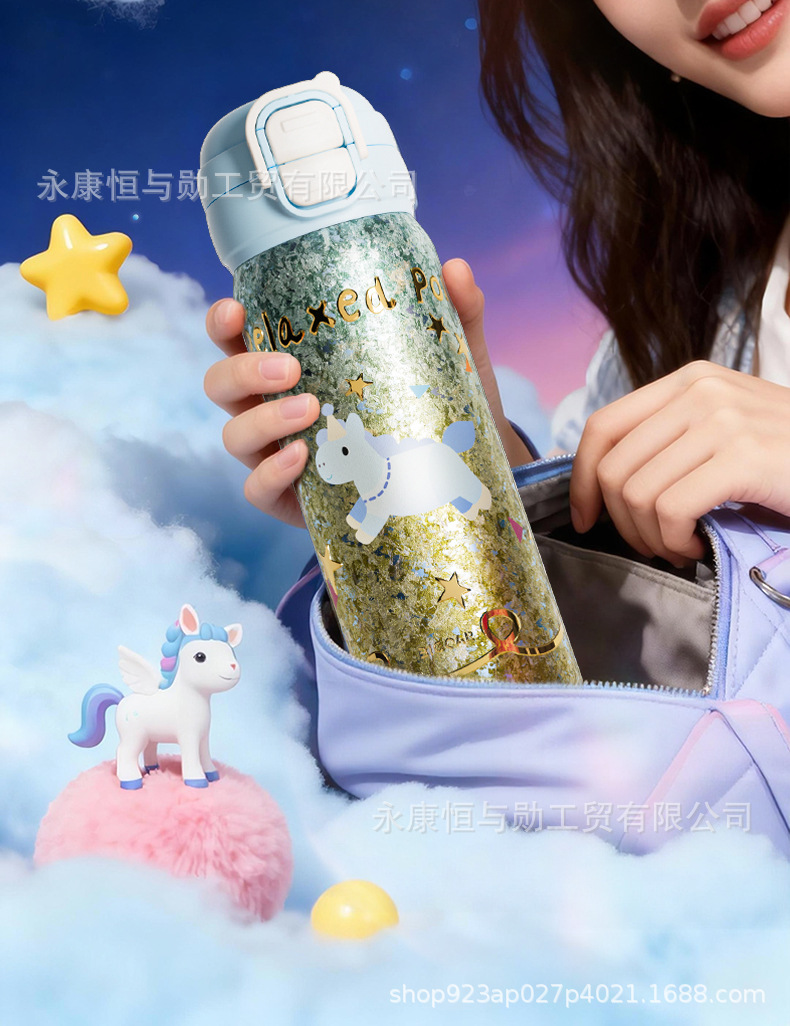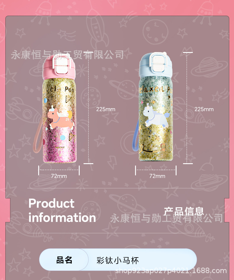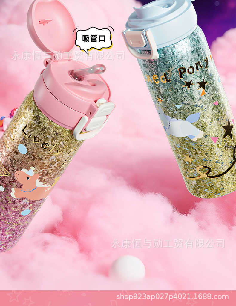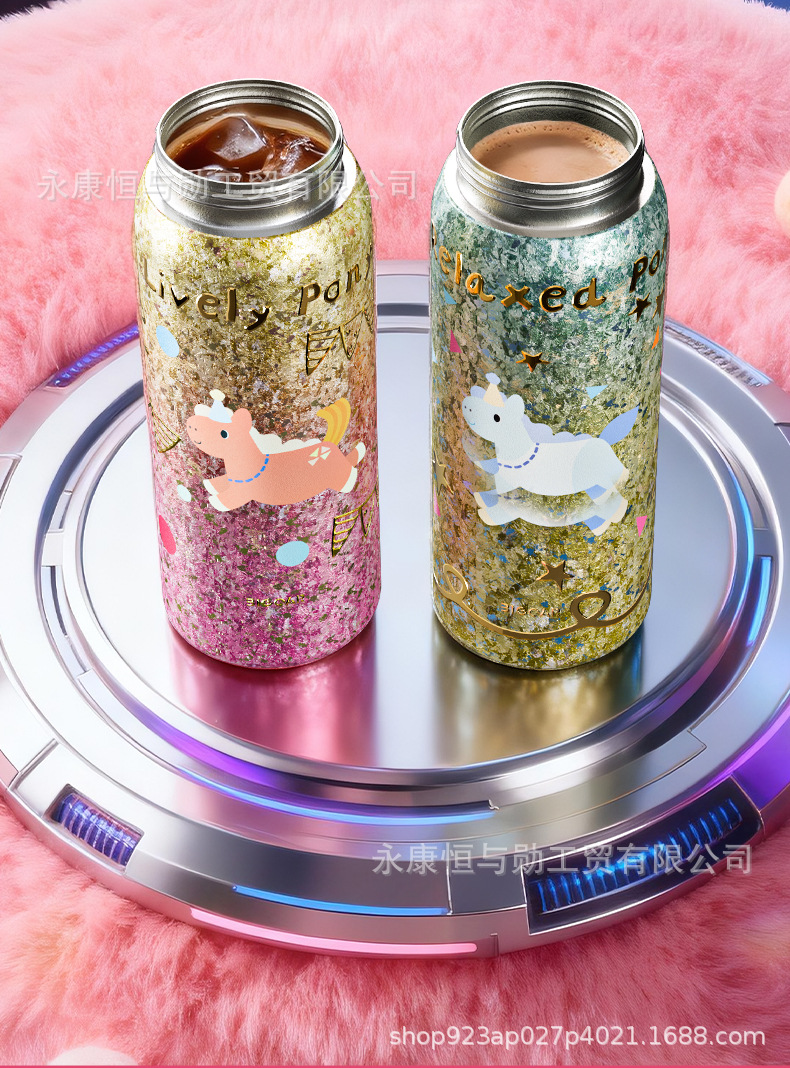 颜色 钛粉独角兽渐变金双饮弹跳杯,钛蓝独角兽渐变金双饮弹跳杯