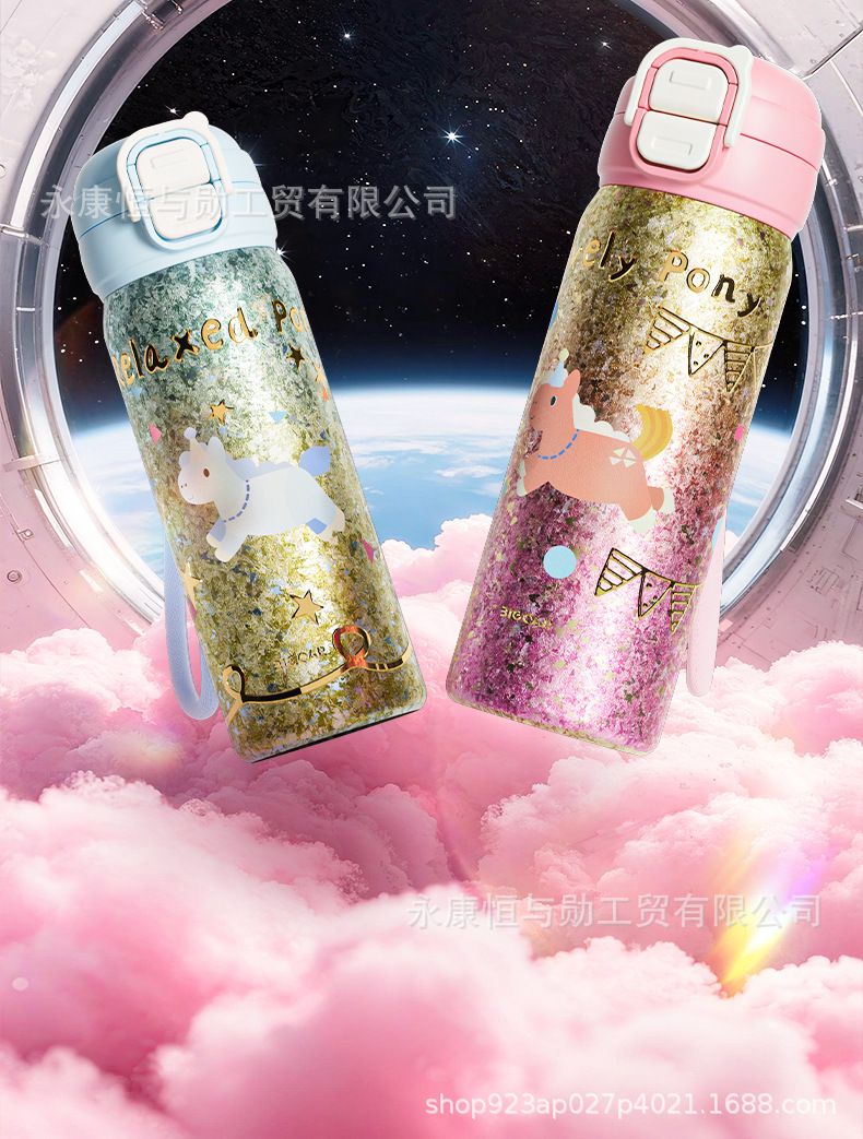 新款纯钛卡通双饮儿童保温杯男女学生吸管杯户外便携大容量水杯
