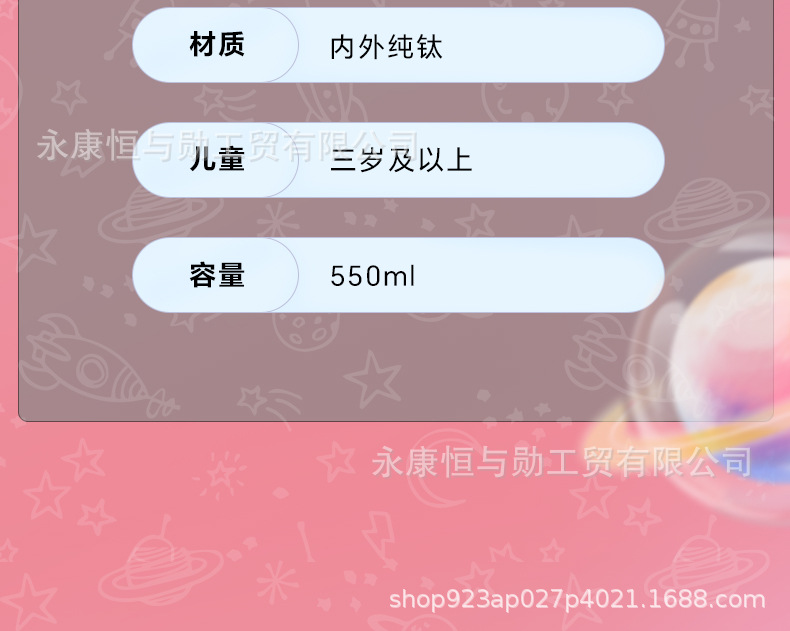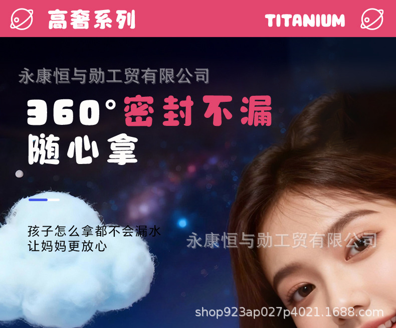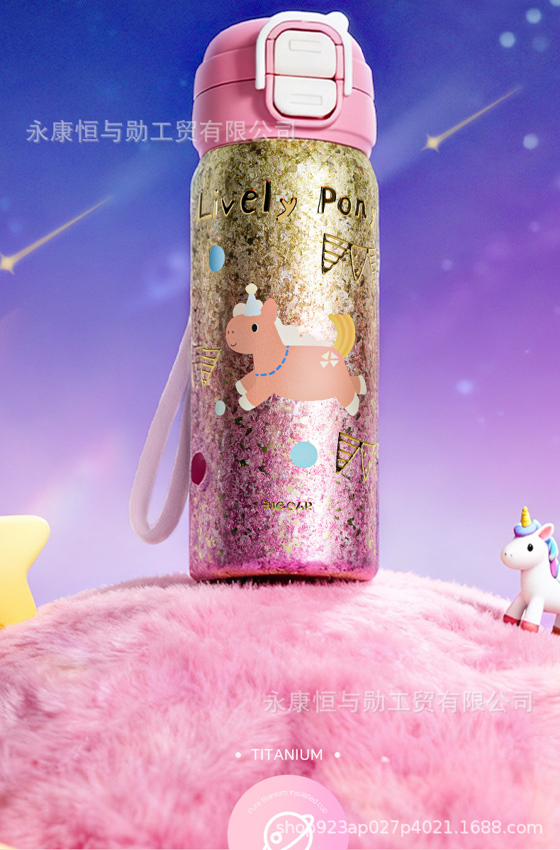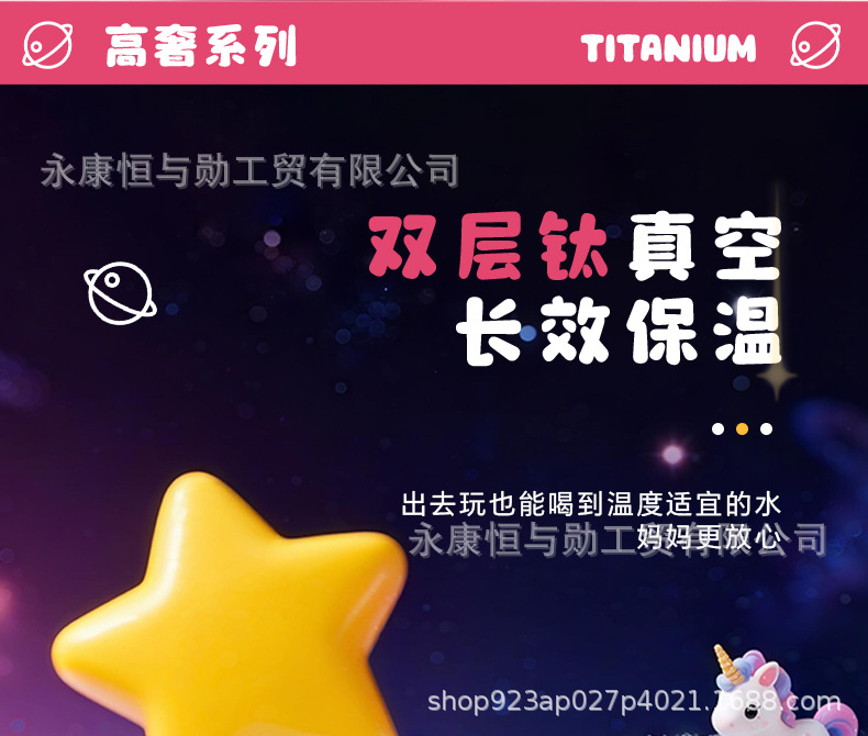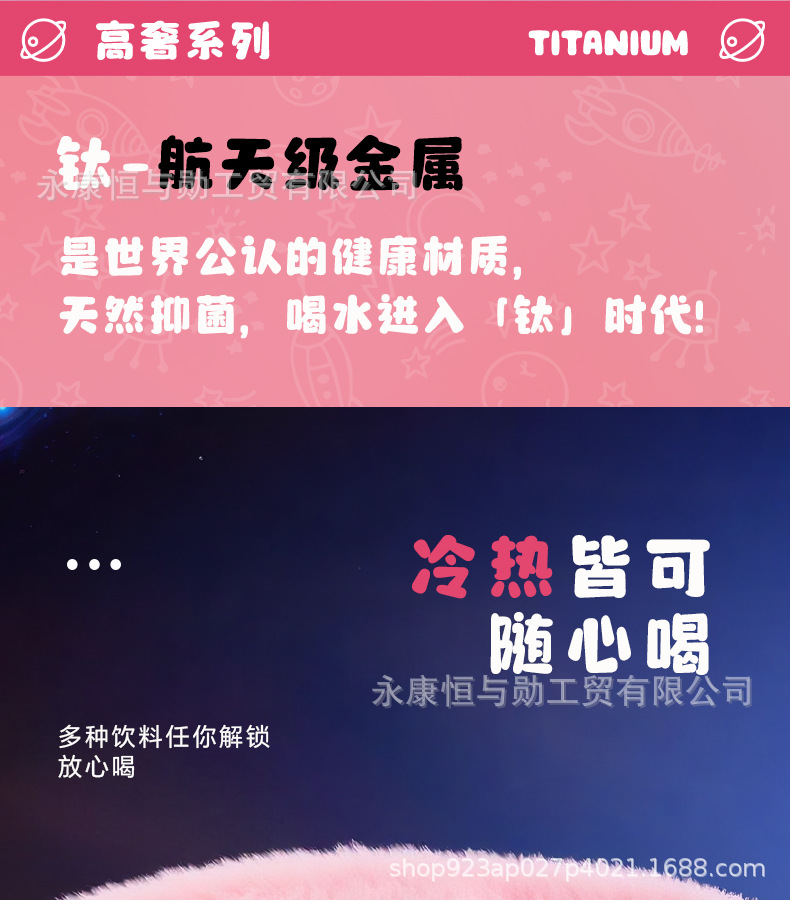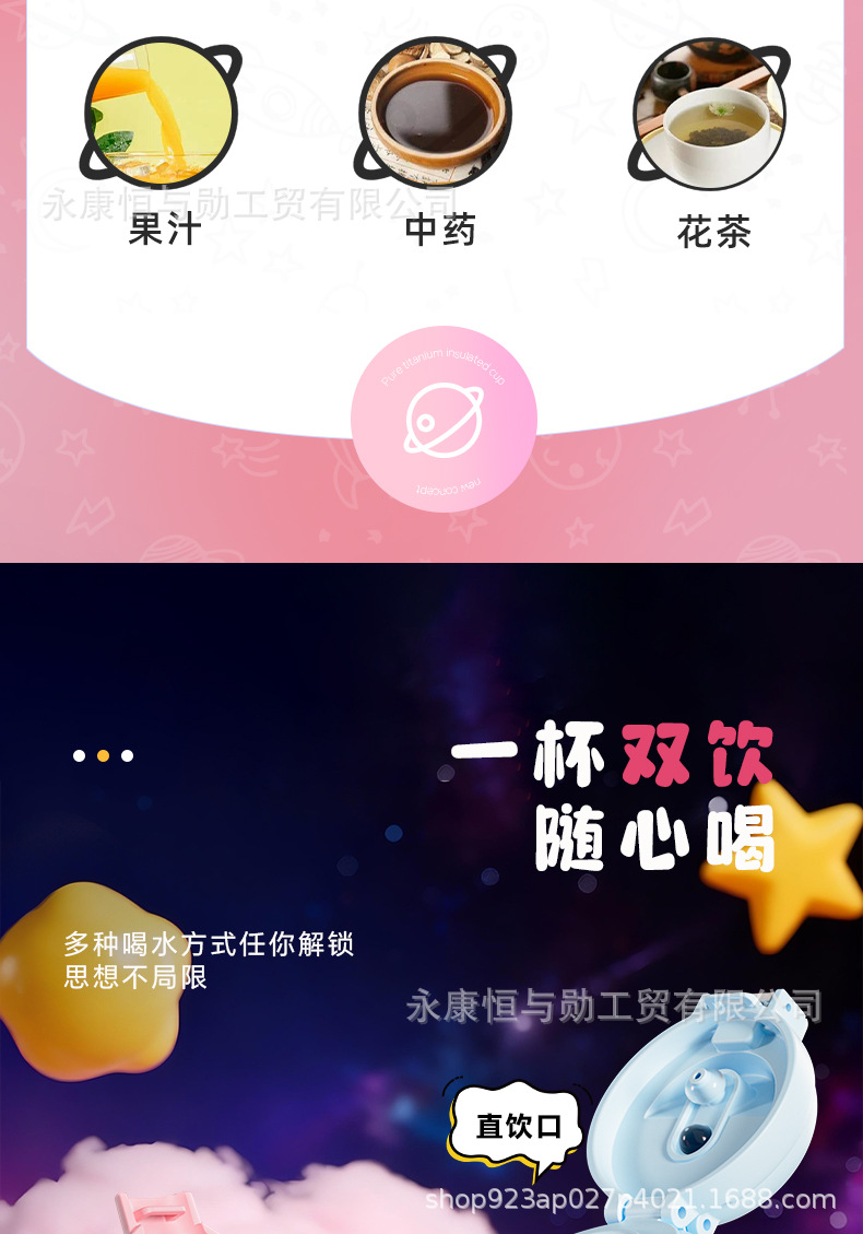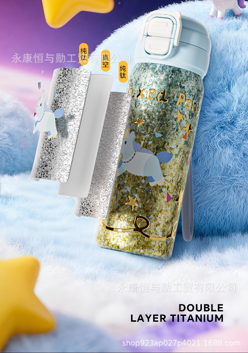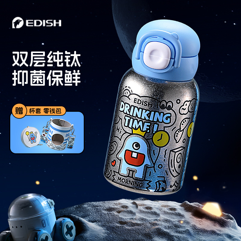 新款纯钛儿童保温杯卡通钛杯高颜值双饮口小学生杯子抑菌保鲜水杯