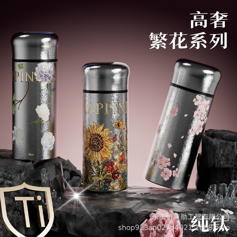 新しい純チタン高見え大容量ハイエンドビジネスギフトストレートカップホリデーカスタム魔法瓶カップティーカップ