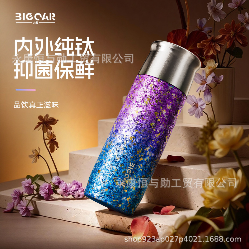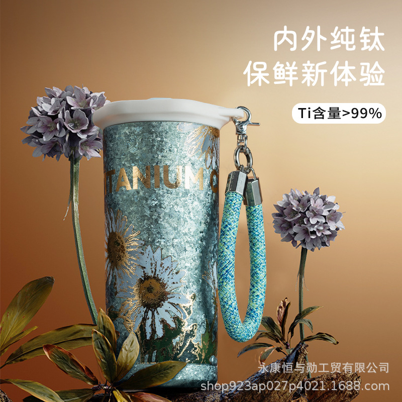 チタンカップコーヒーカップシンプルなポータブルカーカップストローカップ二層カスタム純チタンウォーターカップ魔法瓶カップ大容量