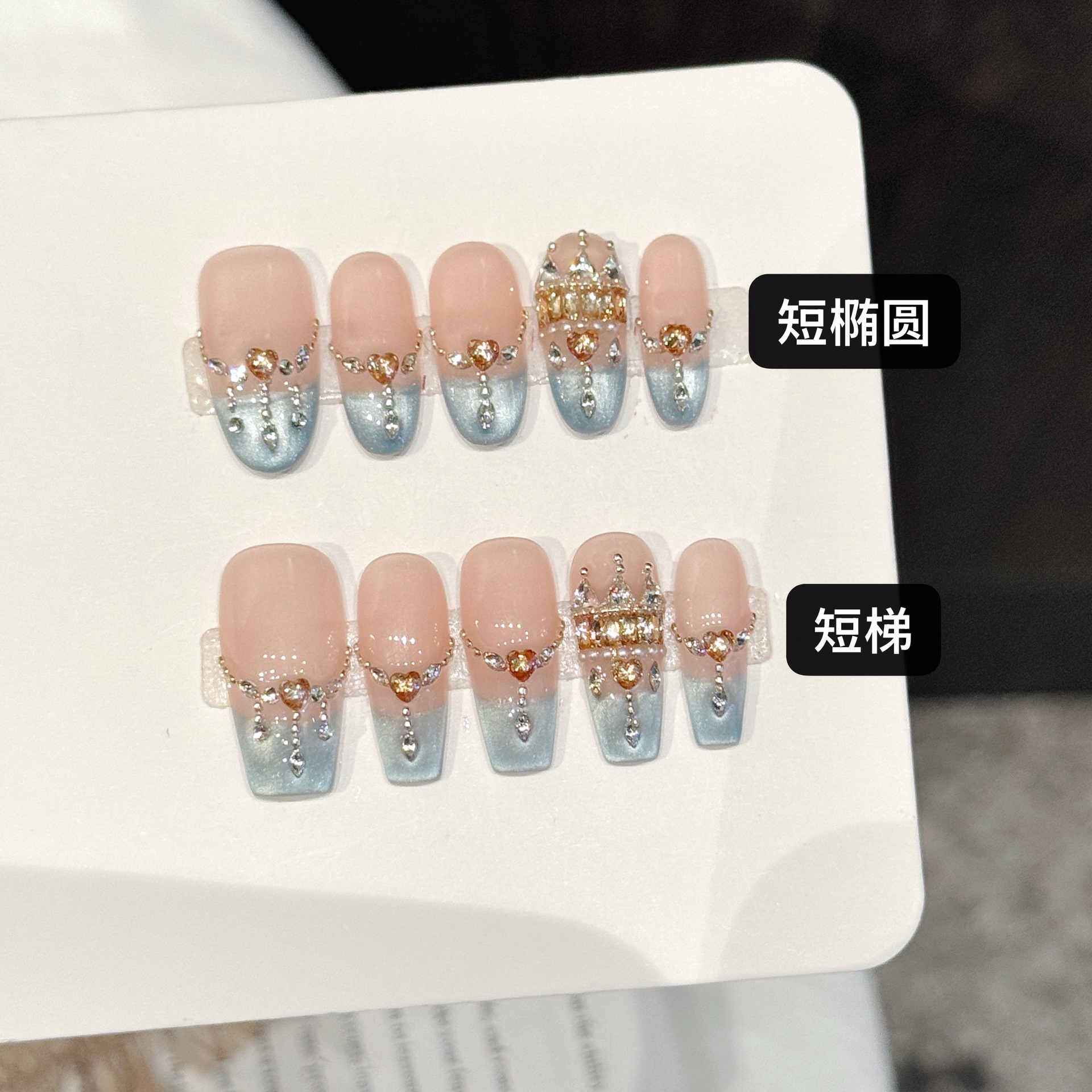 艺禾原创【粉蓝晶冠】粉蓝渐变美甲晶钻皇冠轻奢甜美元手工穿戴甲