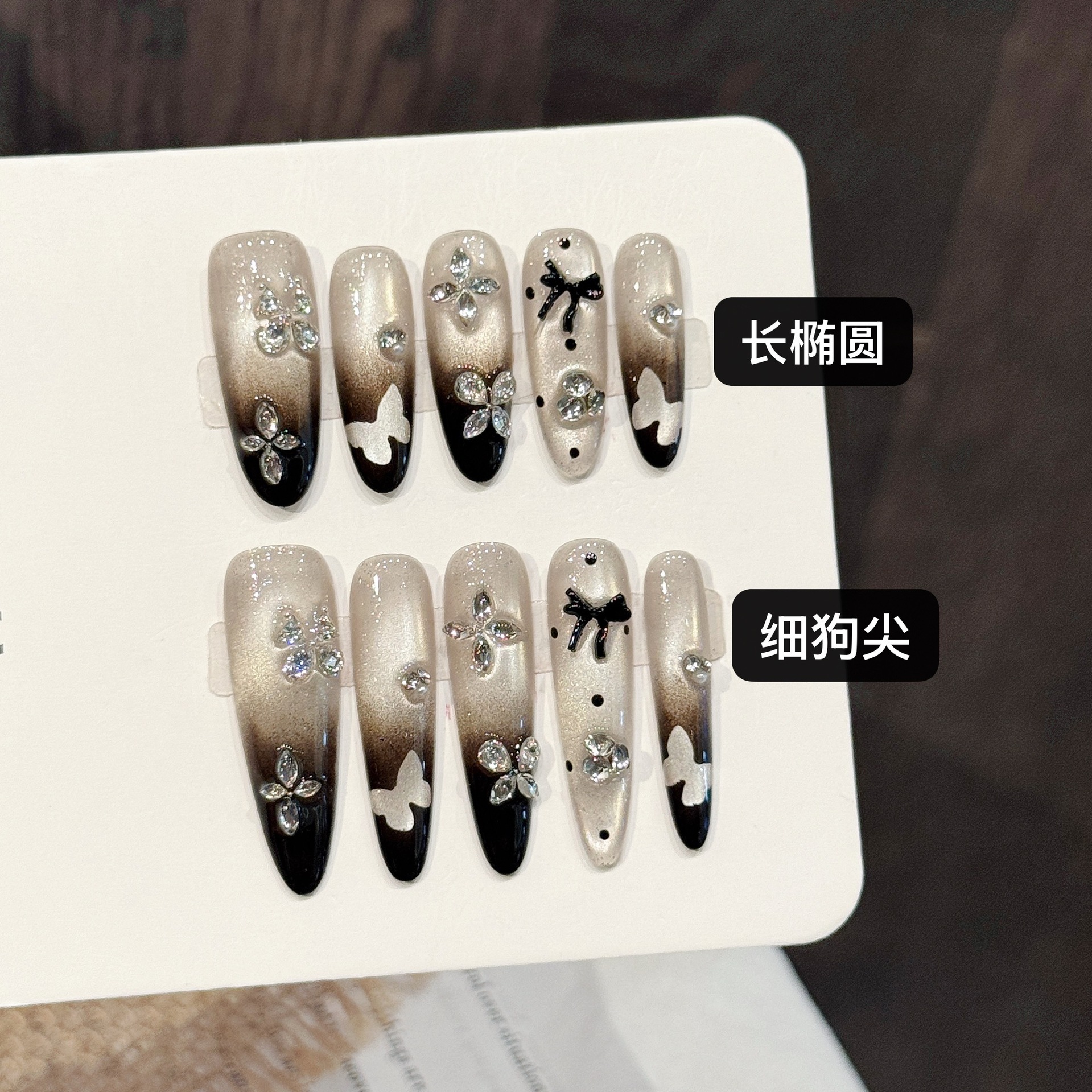 艺禾原创【蝶钻雾棕】雾棕渐变手工穿戴甲蝶钻轻奢甜酷显气美甲贴
