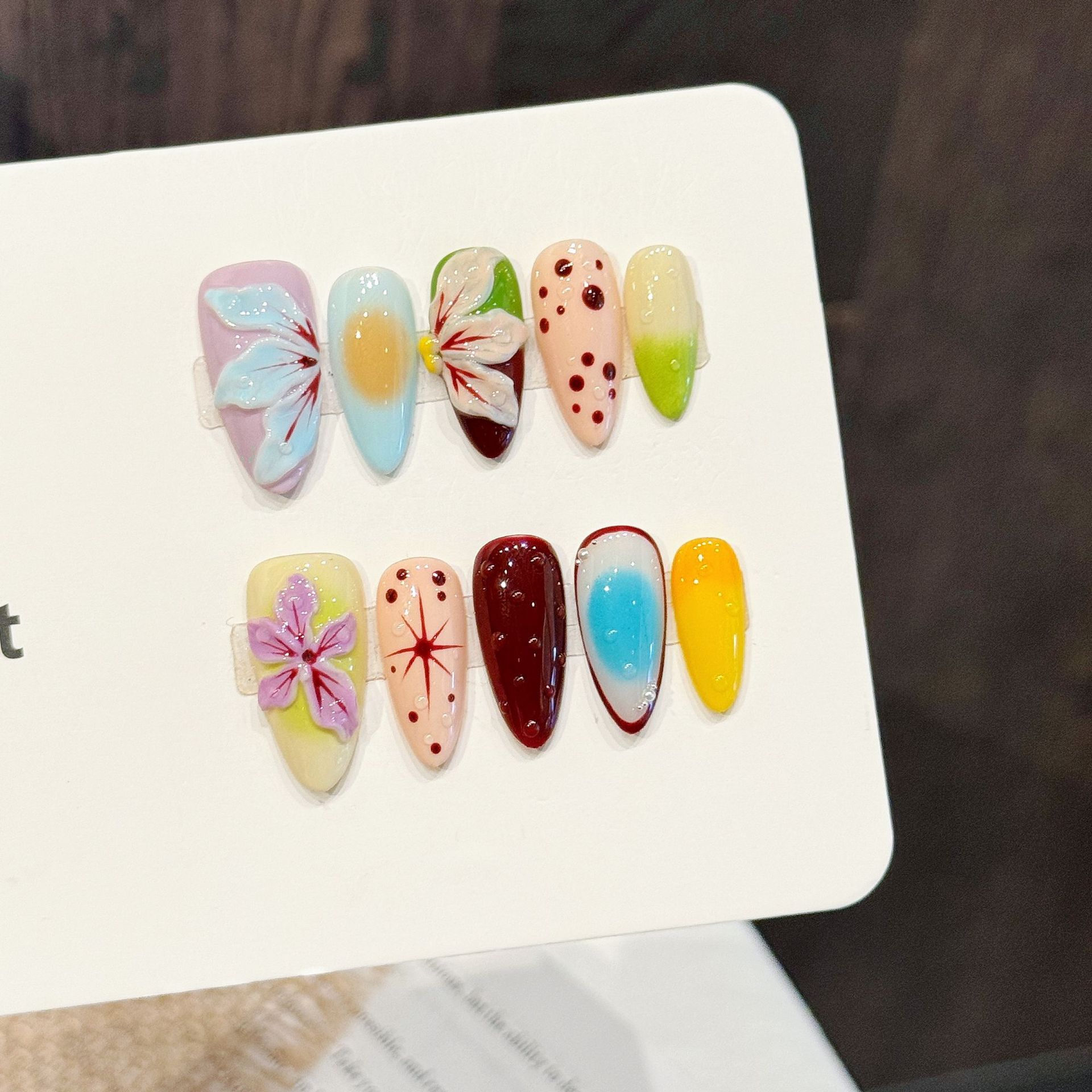 艺禾原创【花漾彩绘】多彩手绘穿戴甲花卉波点款清新撞色显白美甲