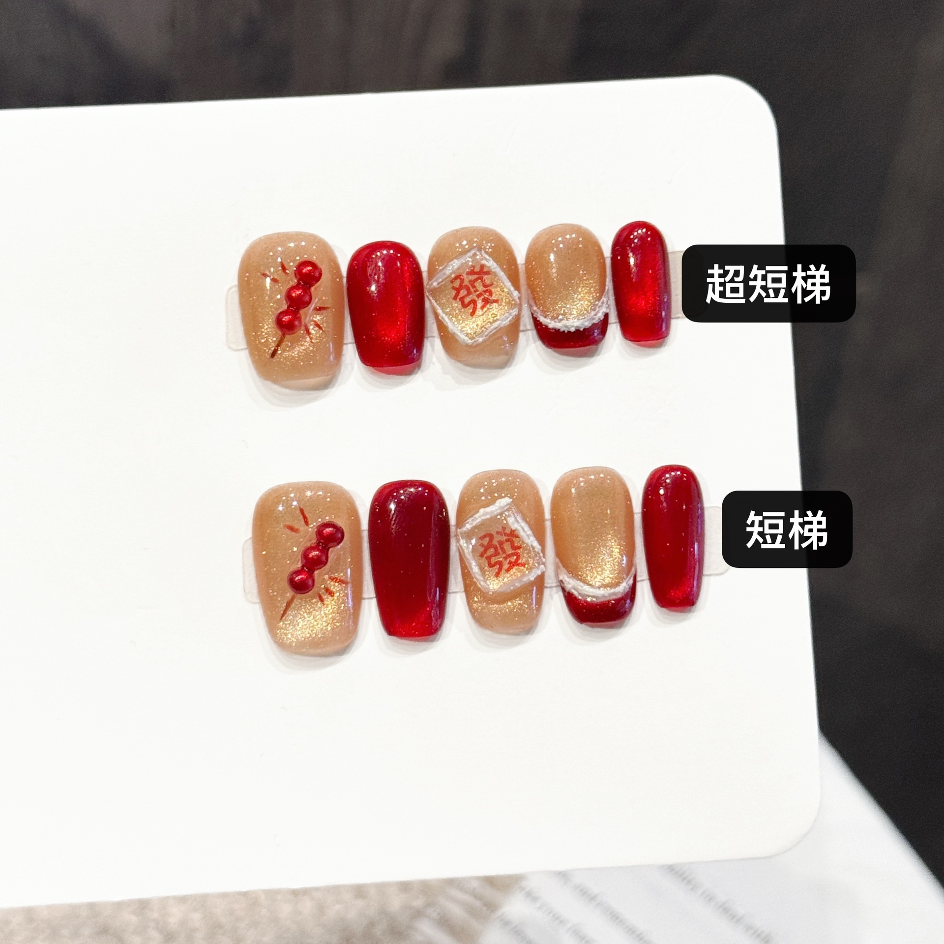 艺禾原创【红金福发】红金撞色穿戴甲福发饰新年氛围感喜庆美甲片