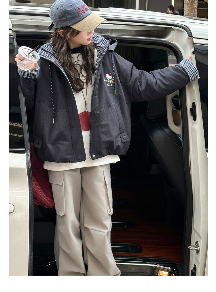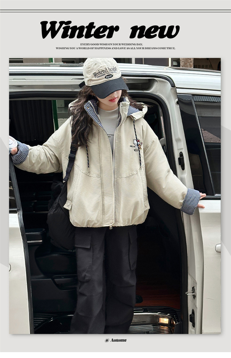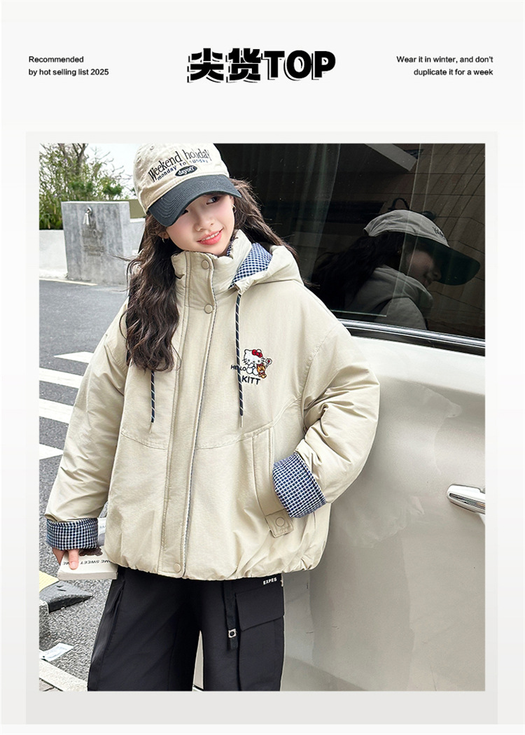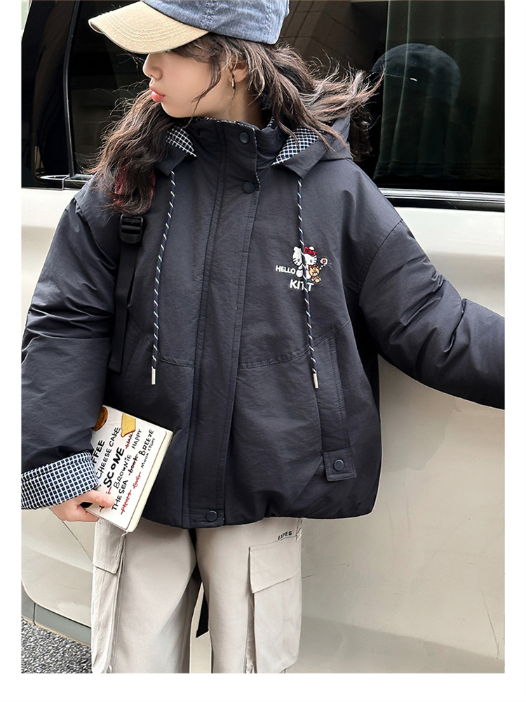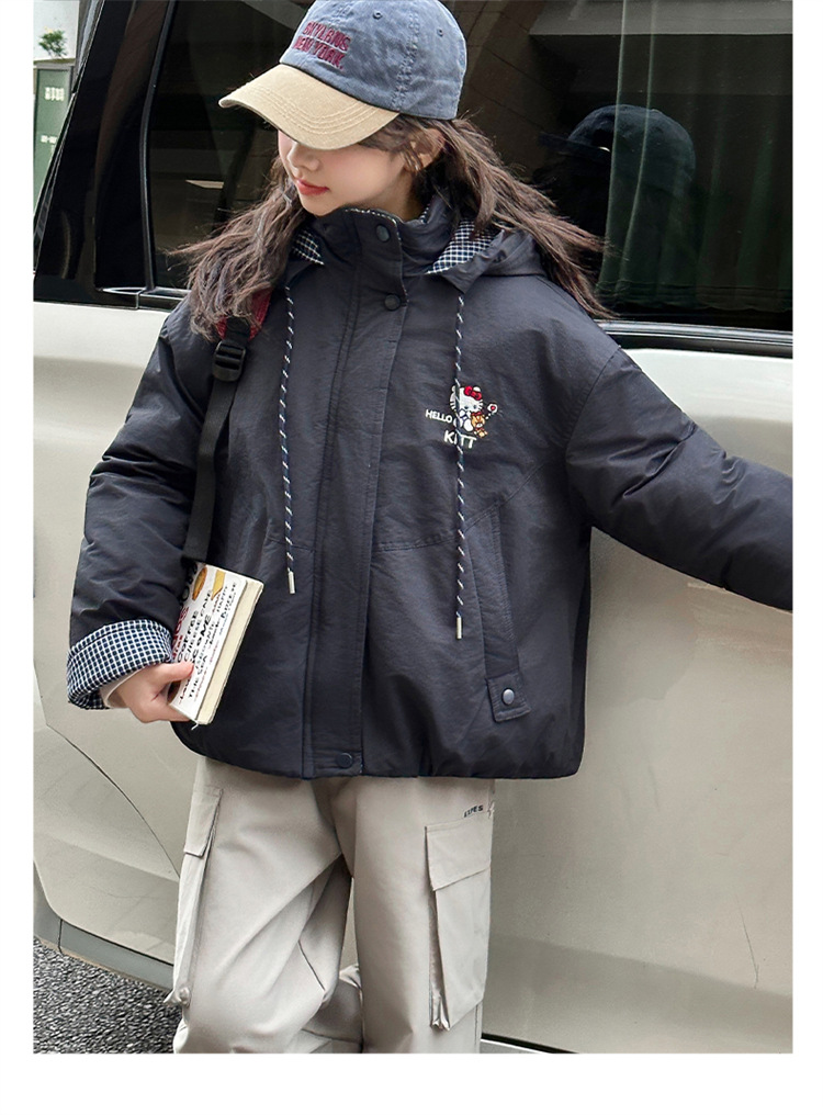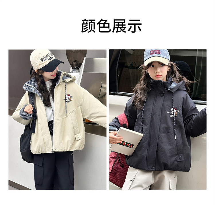 女童夹棉连帽卫衣外套2025冬装新款大童韩版休闲卡通KT猫二棉棉服