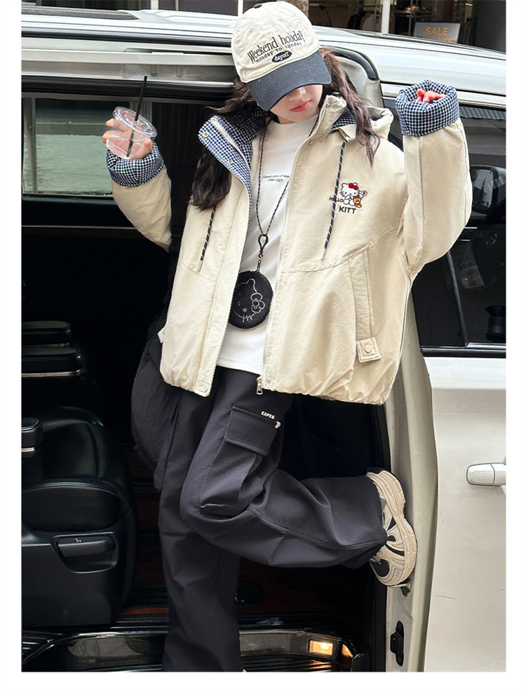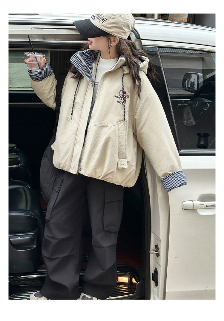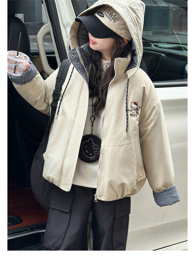女童兔毛加厚外套2025冬装新款大童洋气休闲kt猫加绒风衣棉服夹克