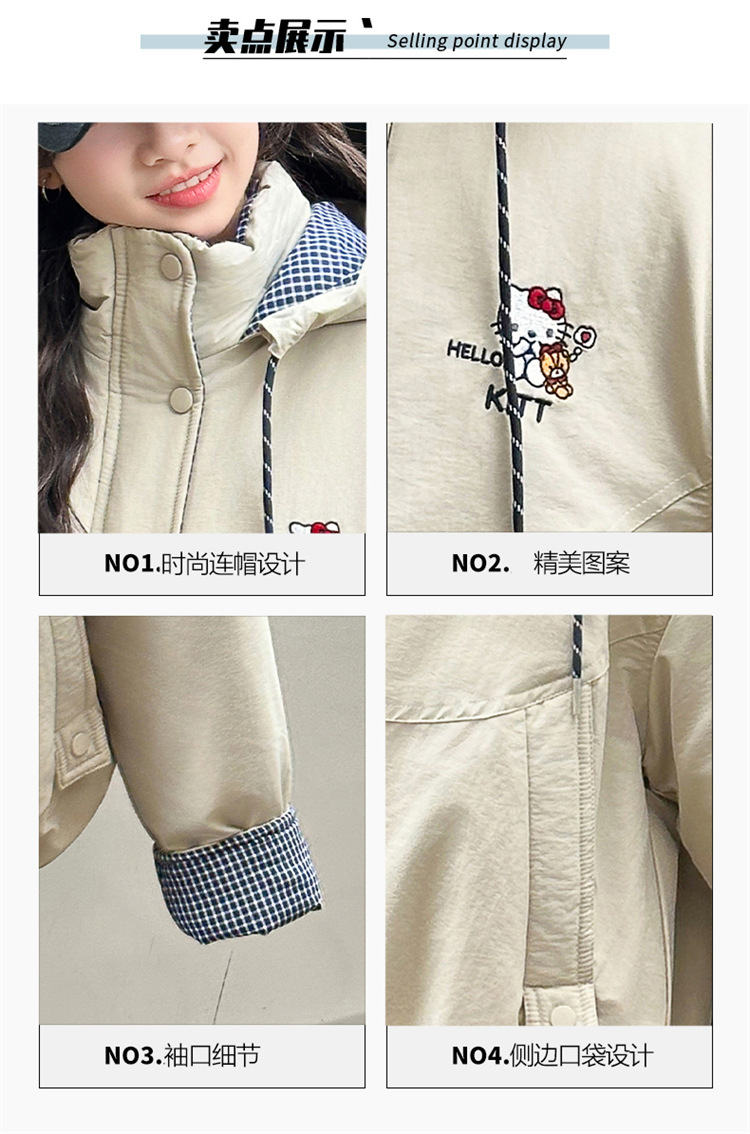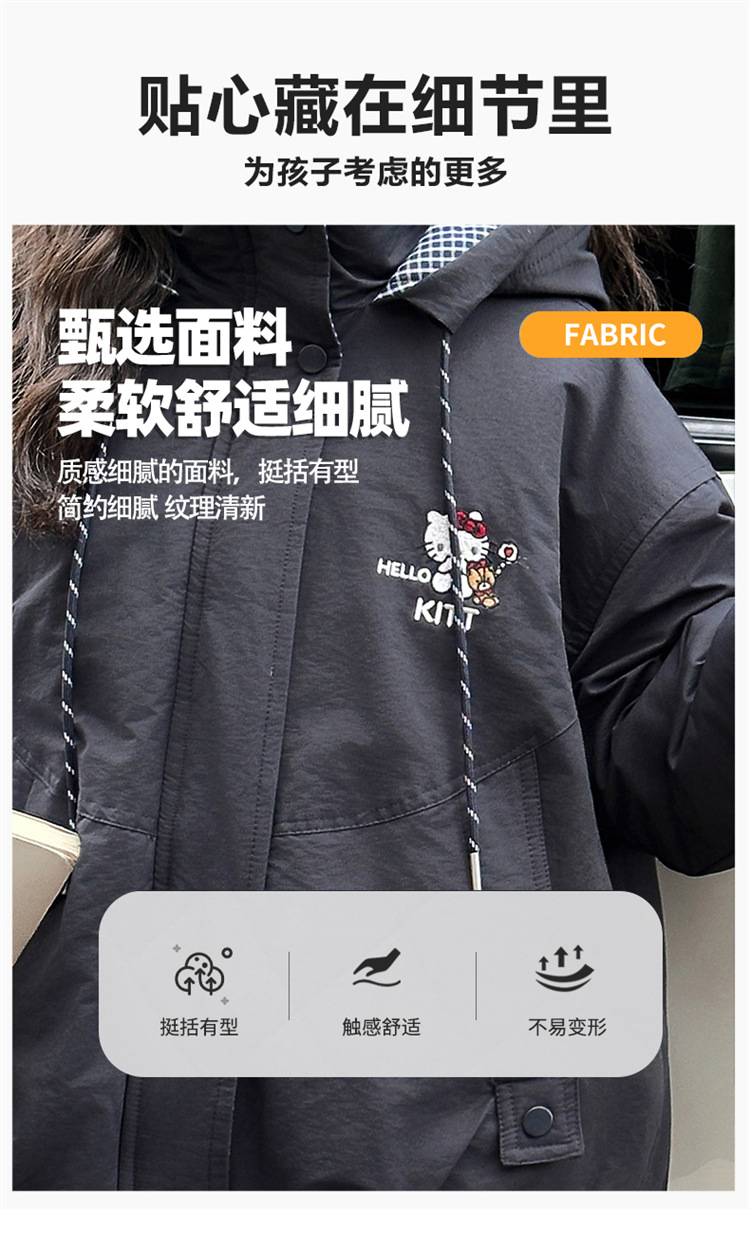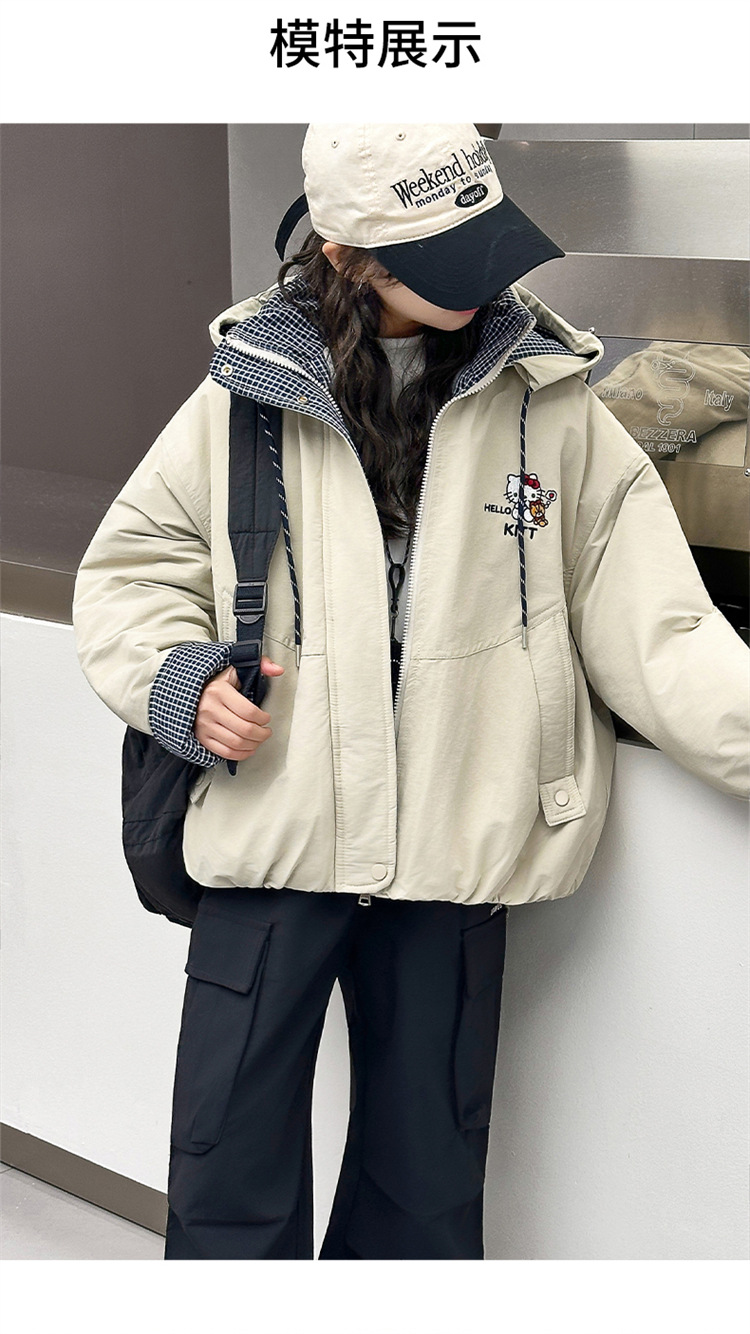 2025新款女童KT猫秋冬季大毛领内里中兔派克棉服大童派克棉服外套