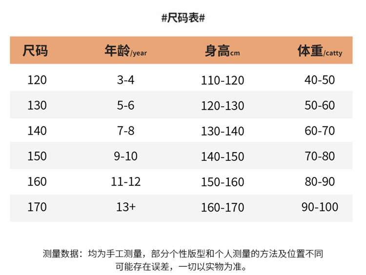 适合身高 120cm,130cm,140cm,150cm,160cm,170cm