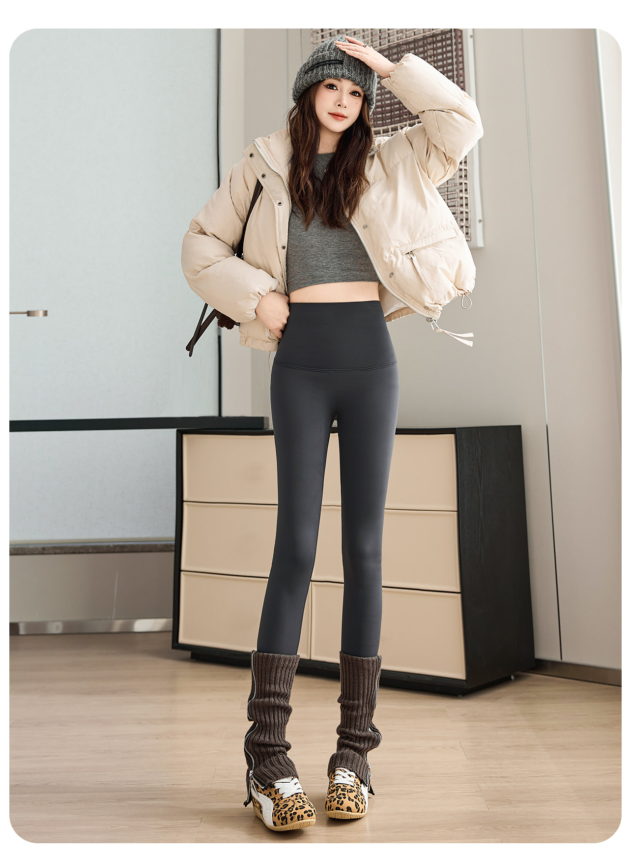 2025年新款加绒加厚高腰收腹鲨鱼裤打底裤羊毛蚕丝保暖冬季外穿女