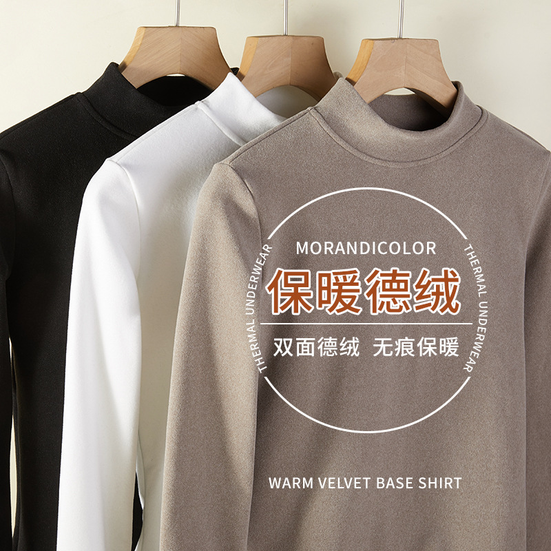 针织半高领打底衫女秋冬季2025新款德绒黑白色高级感内搭长袖上衣